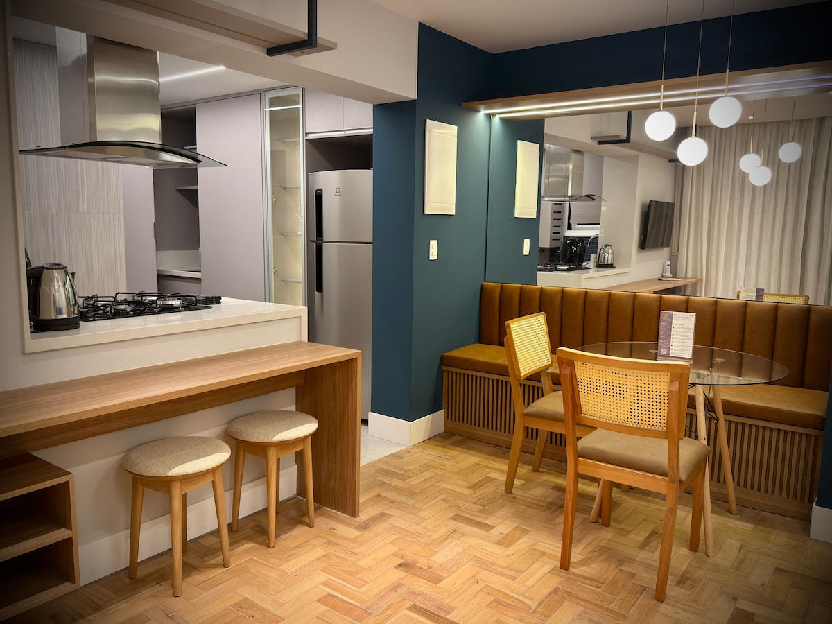 Hospedagem cheia de charme, de alto padrão, acomoda confortavelmente até 4 pessoas. Apto novíssimo e moderno, (quarto com cama Queen, banheiro, ampla sala com sofá-cama e cozinha aberta equipadíssima), em frente à praia da Barra da Tijuca. Toda a infra de um Apart-Hotel, na Av. Lucio Costa e a 100 metros dos sofisticados bares e restaurantes e da agitada vida noturna do centro gastronômico da Olegário Maciel. O melhor lugar do Rio de Janeiro, cercado de muita diversão para toda família.