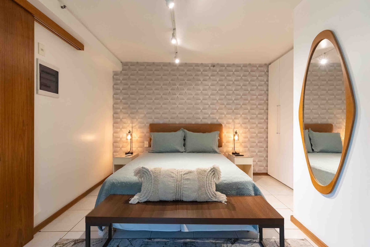 Flat charmoso no Leblon com quarto e sala independentes. Ar-condicionado e TV em ambos os cômodos. Hospeda 2 pessoas com conforto e até 3 com sofá-cama. Silencioso, limpo e com serviço de limpeza de segunda a sábado. A 2 quadras do metrô e perto dos melhores restaurantes e da praia. Ideal para casais, famílias ou trabalho. Anfitriões atenciosos e sempre disponíveis! Segurança, conforto, localização incrível e clima de casa. Sauna, piscina, academia, portaria 24 horas e toda comodidade!