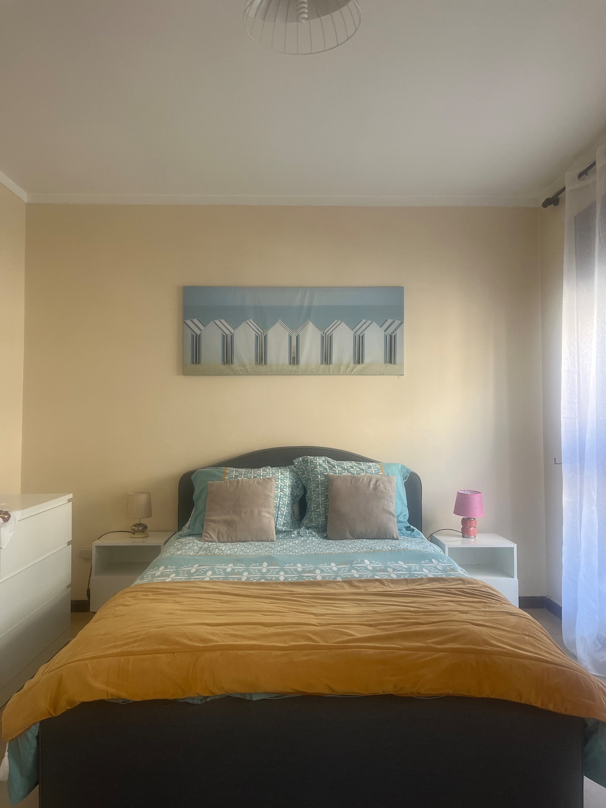 明亮通风的设计房源,阳台,距离海滩1分钟