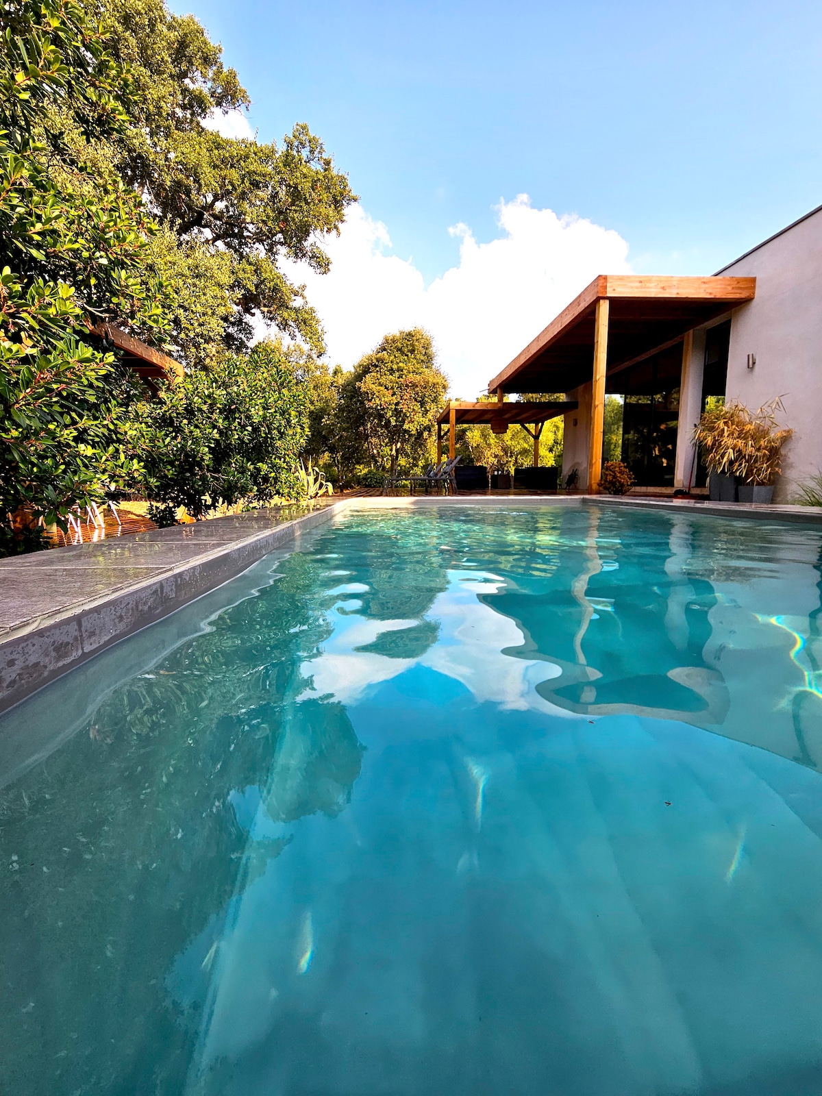 La Villa di Sogni est une d'architecte en bois composée de 4 chambres, 2 salles de douche et 3 wc, le tout dans un environnement définitivement familiale et sécurisant. Idéalement situé pour rayonner dans la région : 7km de la plage de St-Cyprien mais aussi 10km du centre ville de Porto-Vecchio. La villa bénéficie d'un accès proche de la rivière de l'Oso. La villa est située dans un quartier calme et familial, dans un mini lotissement de 6 villas. Chaque villa a sa piscine privative chauffée