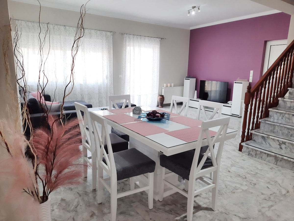 A minimal rustic style, ground floor apartment with a cozy back yard. Decorated with upcycling wooden furniture customized from us. The apartment is located in a quiet neighborhood.Guests are able to park just outside the house. The modern town of Corinth is located approximately 5 Km northeast of the ancient ruins. The center of Corinth and the beach (kalamia) which have coffee shops, bars and restaurants are both 5 minutes walking distance from the apartment. All people are welcome.