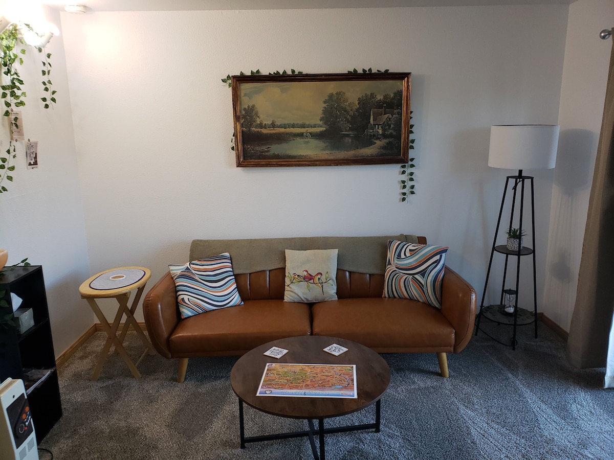 This beautiful space is furnished with delightful driftwood pieces and art created by the artist/owner included in the decor. Spacious ground level unit, vaulted living areas and covered rear patio provide lots of space for our guests to enjoy. BBQ on the back porch or enjoy the fully equipped spacious kitchen. Private washer/dryer allows unrestricted use. New flooring, paint, and beds/bedding provide a fresh clean environment for you stay. Full size Murphy cabinet bed for 5th or 6th person.