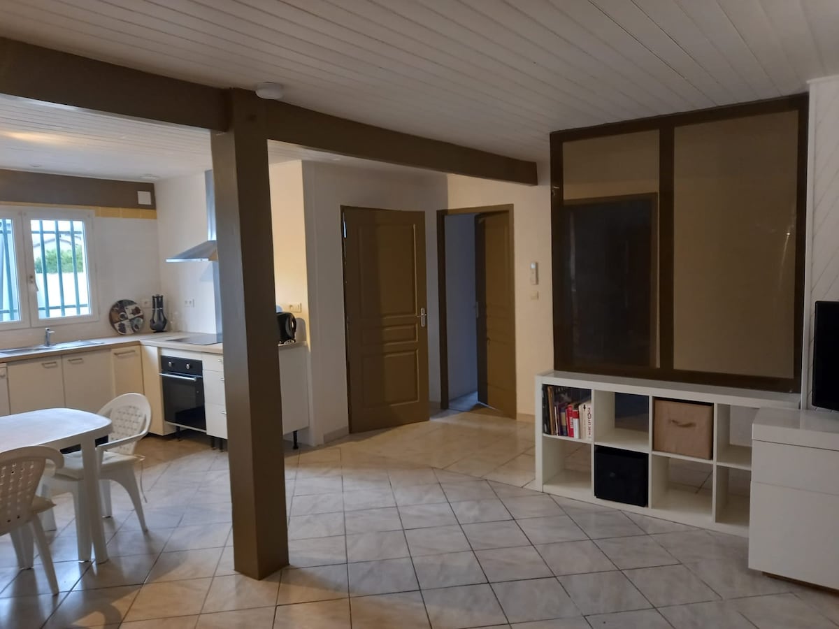 Appartement en rez de jardin, pouvant accueillir 4 personnes (une chambre avec lit 140 et un canapé lit en 140 en option av supp.) Cuisine équipée (four, micro ondes, cafetière Tassimo, bouilloire, grille pain, réfrigérateur / congélateur , blender, batteur / mixeur, appareil à raclette, lave vaisselle). Machine à laver. Clim réversible. Jardin cosy. Très lumineux, situé à deux minutes à pieds du centre ville sur un axe passant. Kit d’accueil (café, thé …). Accueil autonome- départ autonome