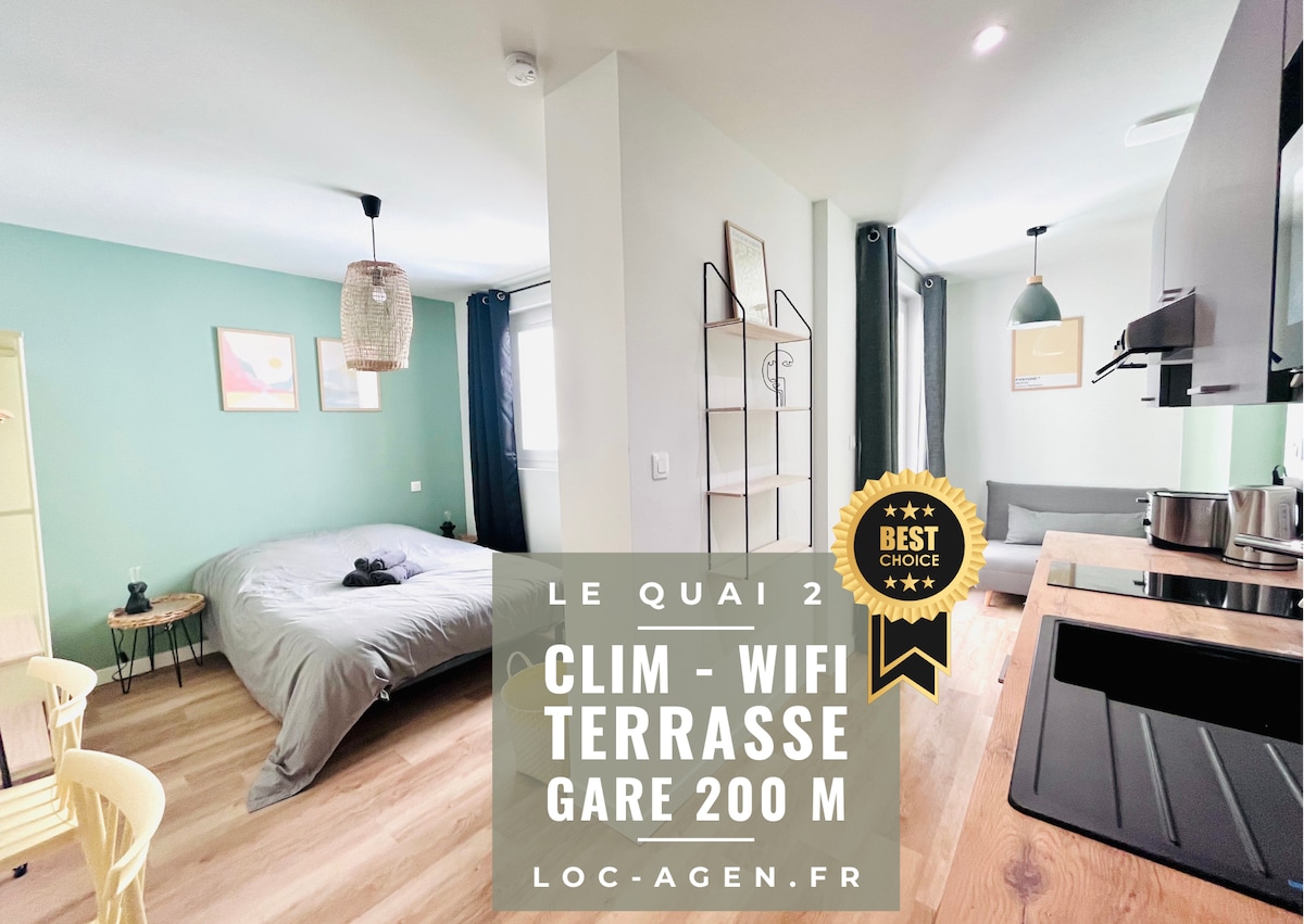Charmant studio calme et entièrement équipé au cœur d'Agen.📍 Vous apprécierez ce quartier très vivant et avec ses cafés, ses délicieux restaurants et ses nombreuses boutiques.✨ Proche de toutes commodités vous êtes à 9 min à pied de la gare, 3 min de l'office du tourisme.