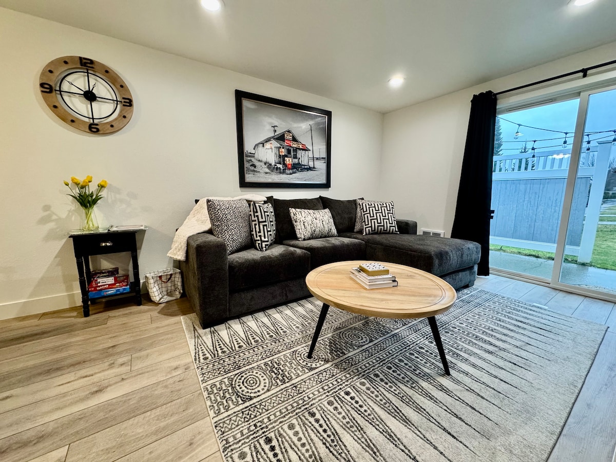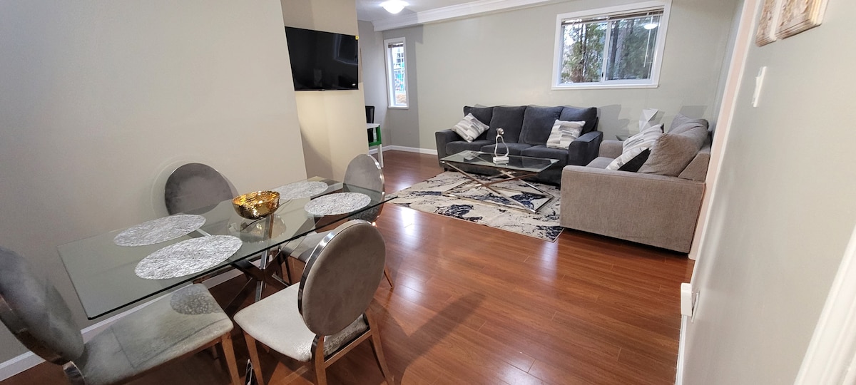 Our cozy and comfortable 2-bedroom ground floor guest suite with indoor fireplace and office space is a great vacation home for a getaway with your friends and family. This suite is a great option for business travelers, students and families. This home provides easy access to Hwy 1, Mission, USA Border and is just minutes from walking trails, golf courses and Castle Fun Park. Conveniently located minutes away from restaurants, grocery stores and under 10 min drive to Sevenoaks Shopping Mall.