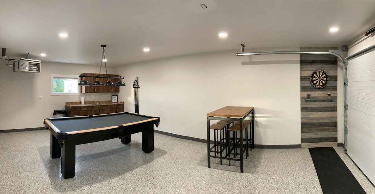 Whether you’re looking for a getaway, family gathering, or a comfortable home away from home for the whole crew to stay, this house has it all. Central air to keep everyone cool. Smart Tvs and blackout curtains in every room. A natural gas BBQ on the deck with patio furniture and hot tub. A heated garage with a gym, card table, foosball table, and pool table. A fire pit and trampoline in the back yard plus access through the gate to a huge park with paved walking paths.