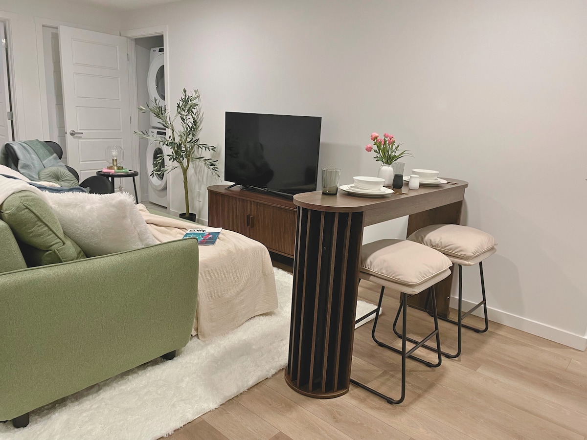 Our basement guest suite is brand new and you will love to stay here. We have 1 bedroom and bathroom, dedicated workspace, comfy couch to lay down and watch TV on Roku, a cute dining space and well equipped kitchen. The side entrance is private. Laundry is also available for you. You will be comfortable in this spacious and unique space! The hosts live upstairs on the main floor of the house and you will stay in our basement guest suite with total privacy.