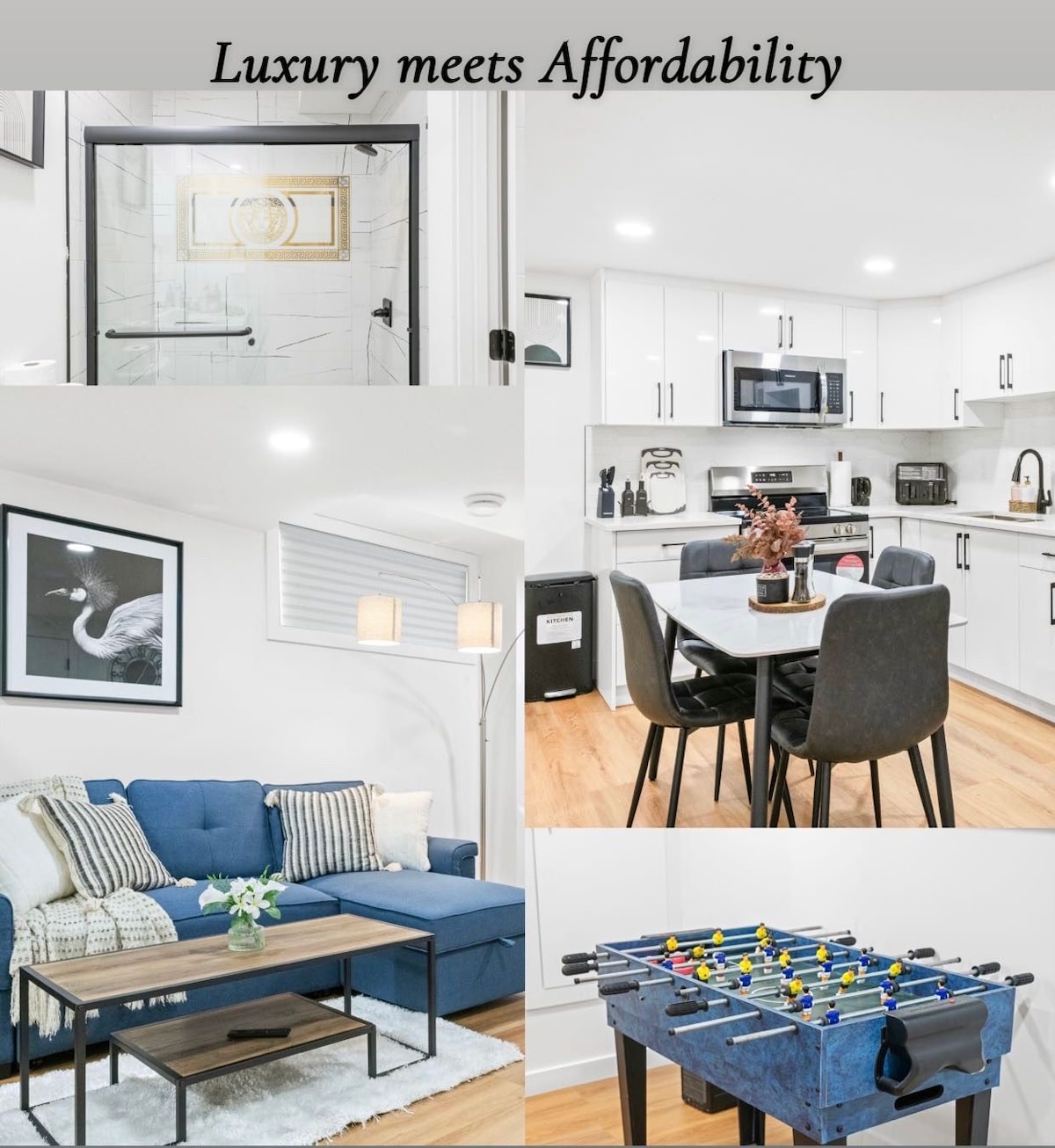 Beautiful memories await you at our brand New executive, spotless and spacious 2-bedroom legal basement suite. Here you will have 5-star sleeping experience at a 1-star price. Step into our modern private entrance basement fully equipped and tastefully furnished to meet all your needs. Our suite has soundproofing which reduces noise from the main floor, but you may still hear sounds occasionally. The bedrooms have Queen bed and Full size bed and love seat in the living room. Self check service