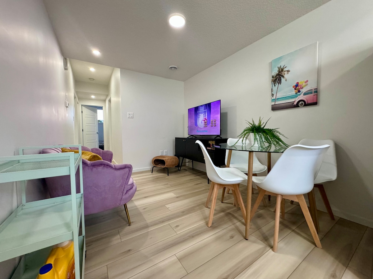 Discover serenity in our 1-bedroom walkout suite. Enjoy a cozy queen bedroom with a walk-in closet & workspace. The bathroom features a walk-in shower with toiletries. The fully stocked kitchen boasts stainless steel appliances w/ ice and water. Unwind in the living room with a comfortable sectional and a queen pullout bed, accompanied by a 50-inch smart TV overlooking the pond. 15 minutes to EIA, 10min drive to South Common Shopping & only minutes from Tim Hortons and other amenities.