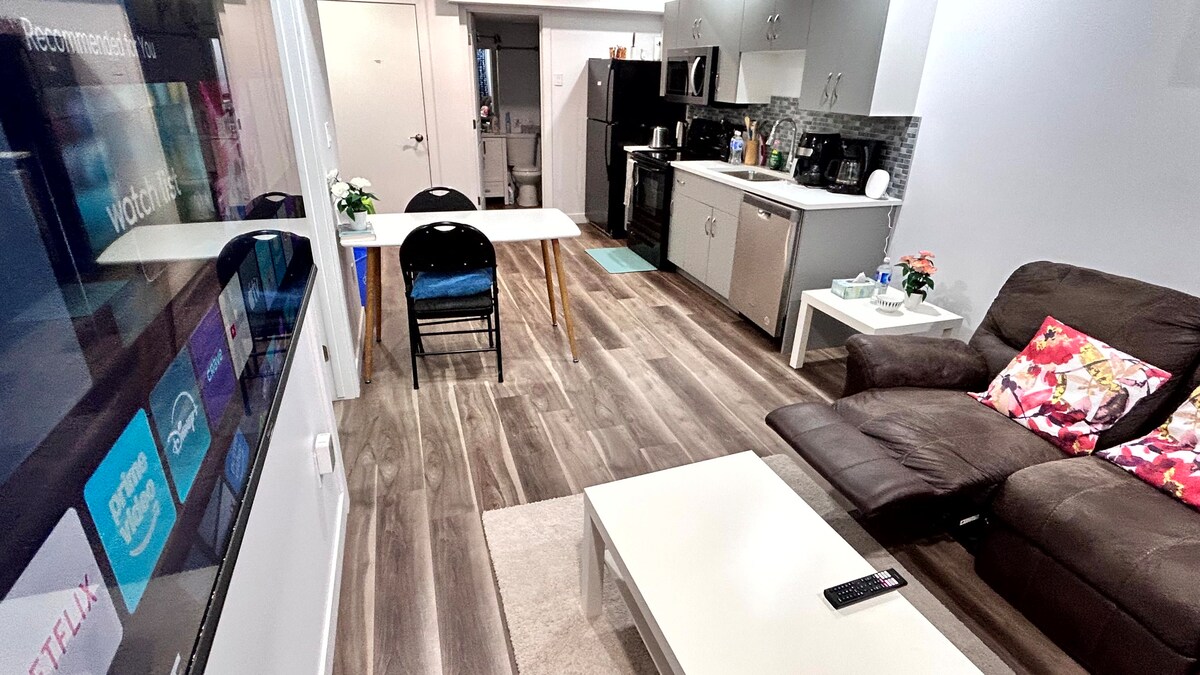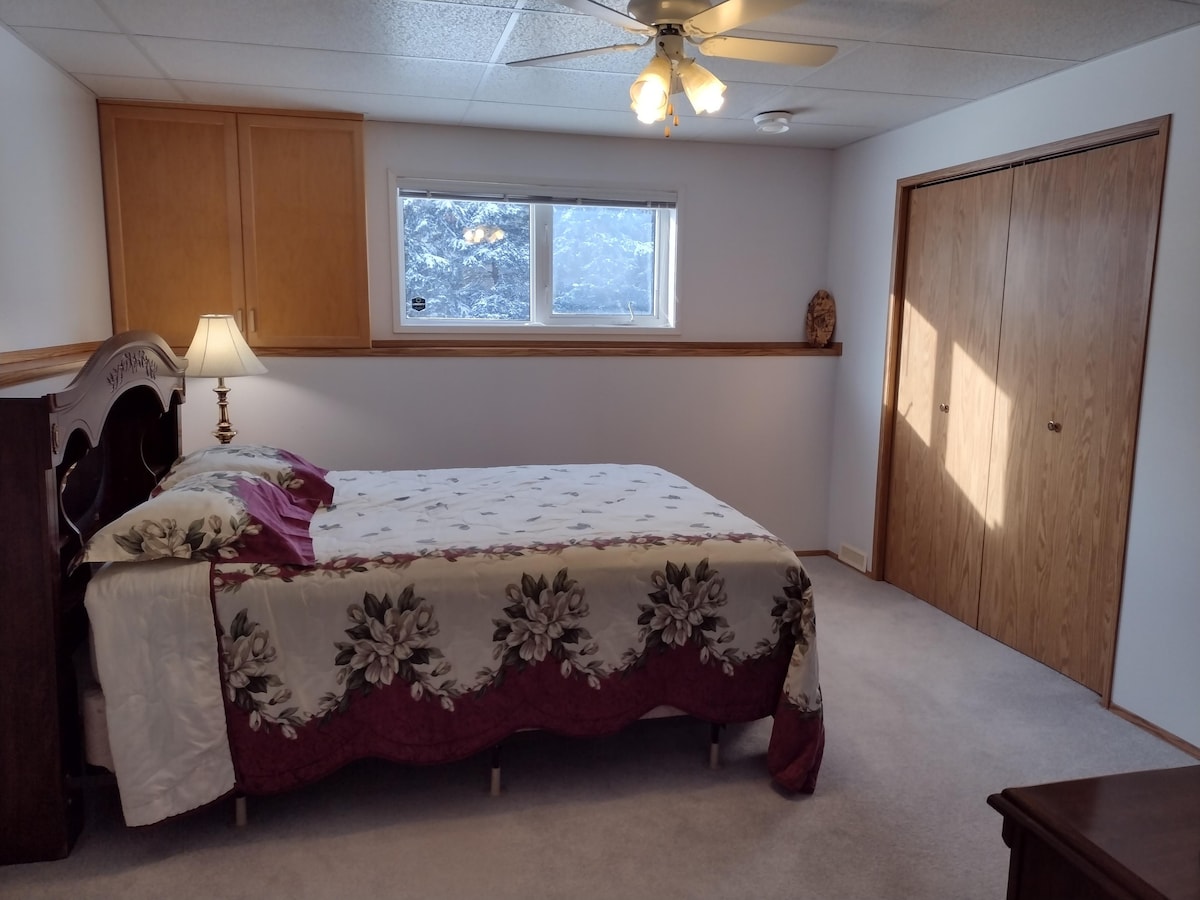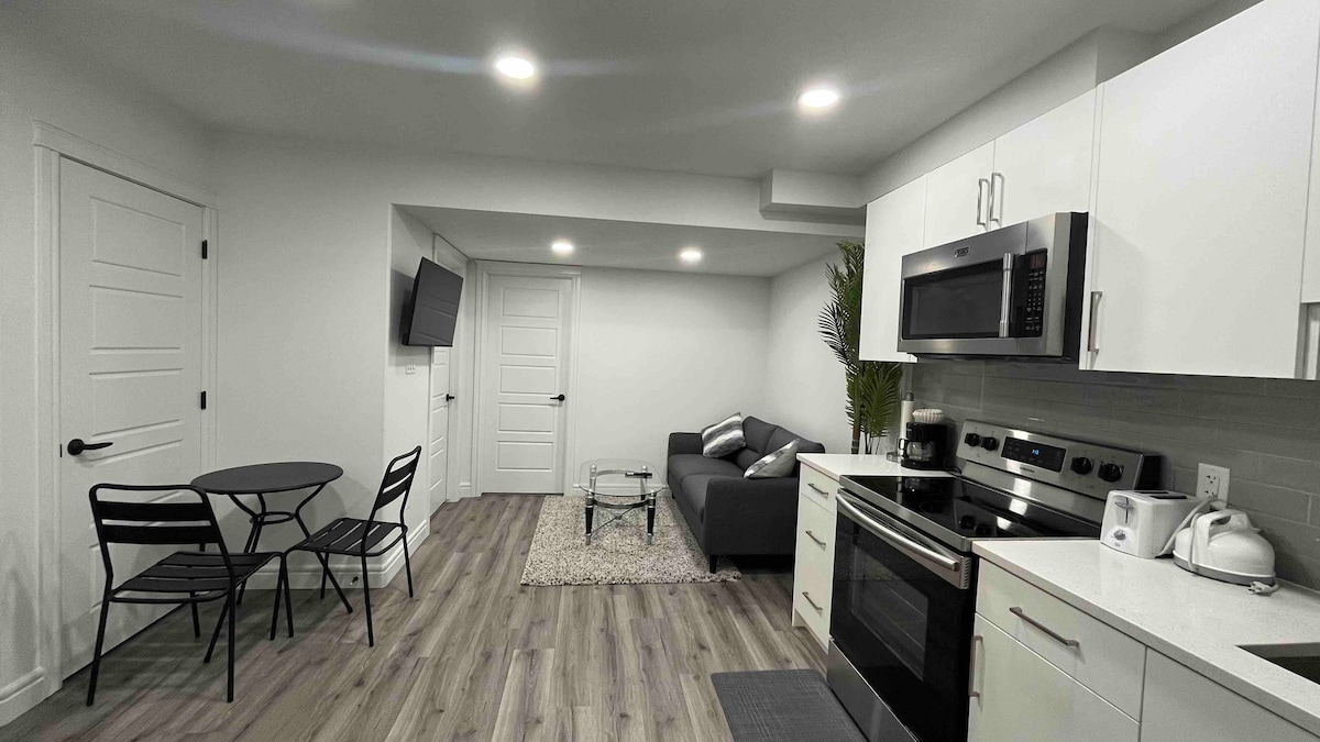 Brand New, clean and spacious. This lower level apartment is an excellent place for a short business trip or for a longer visit. It's excellent for a solo traveler, couple and families on vacation. It has a beautiful spacious bedroom with a queen bed. Bright bathroom for all your 🤳 selfies and in suite laundry. There's a queen foam mattress and an inflatable matress available for additional sleeping.