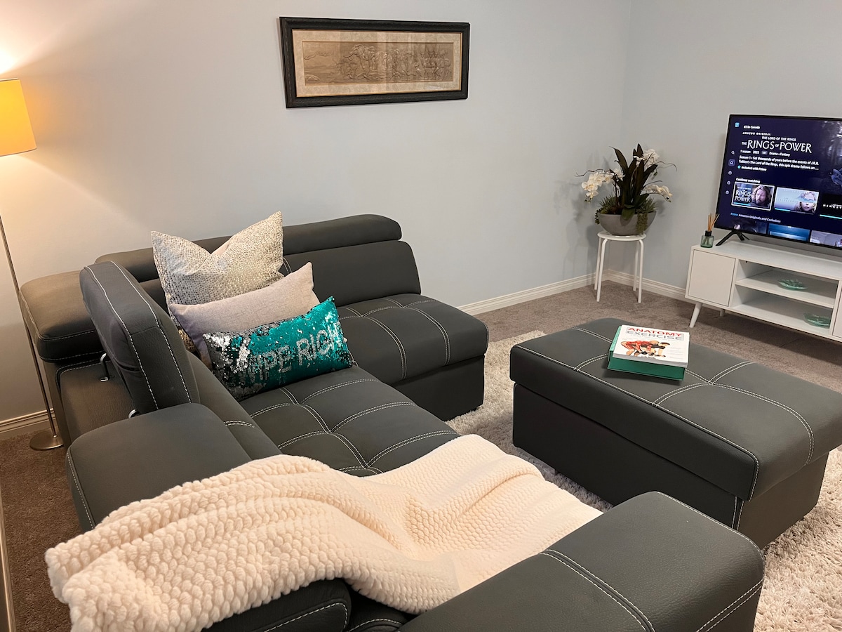Welcome and relax in this stylish, comfy and cozy brand new basement suite in Southfork Leduc. This beautiful suite with a private smart keyless entrance. It is equipped with brand new appliances, 2 ROKU TVs, WiFi, dedicated work station. Free onsite parking to make your stay an enjoyable one, suitable for both personal and business trip. It’s Located 5 mins to the grocery store, 11 mins to Edmonton Int'l Airport, 7mins to LRC and 14 mins to Edmonton Premium Outlet mall for your retail shopping
