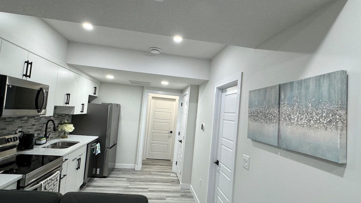 现代双卧室地下室套房,靠近埃德蒙顿机场