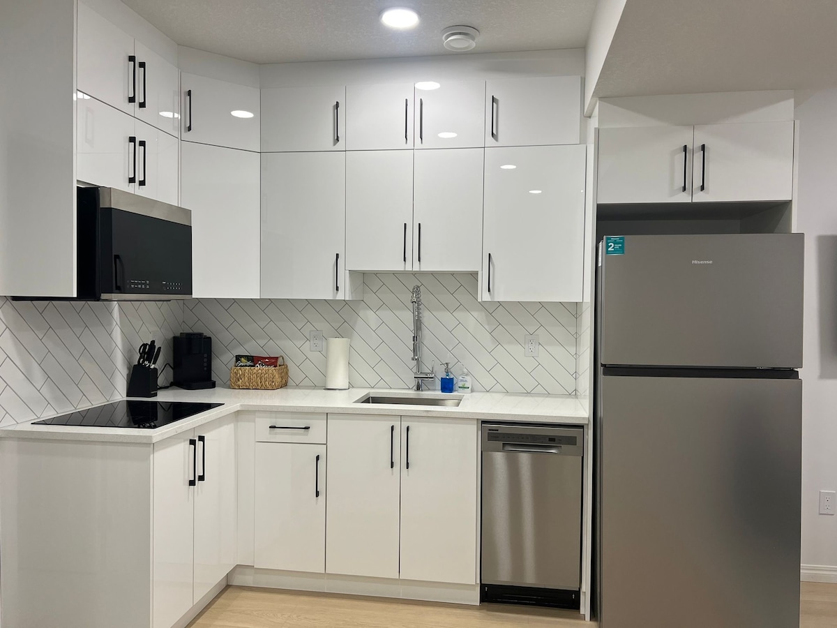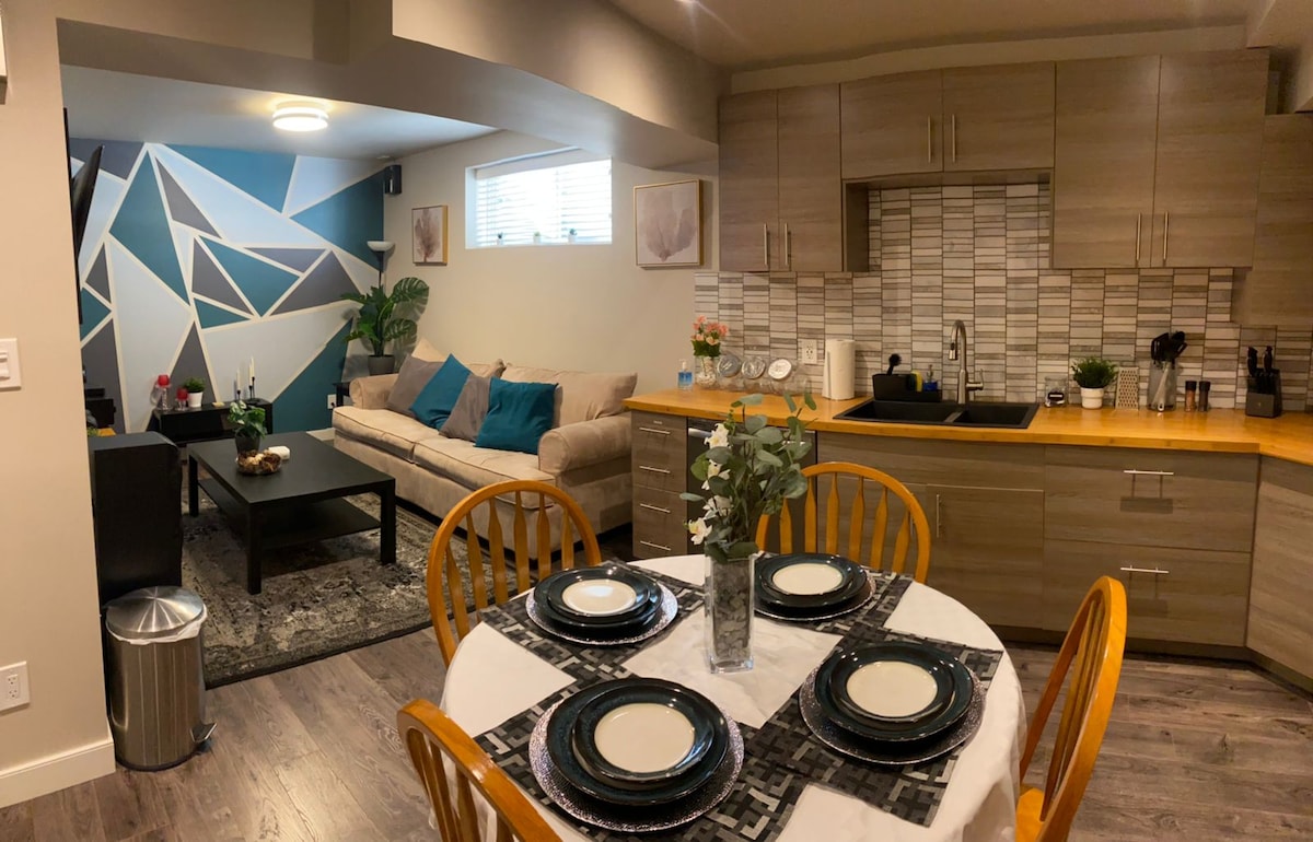 An Edmonton gem! Stay at this Self-contained suite, the perfect spot from which to explore the beauty of Edmonton or just sit back and relax. The unit boasts 4 large kitchen appliances and a washer/dryer. Self check in to your own private entrance to a unit with more than enough space for 4 adults. An easy 20 min drive to Downtown or the airport and a 5 min drive to Currents of Windemere for all you shopping needs. Included is high speed WIFI, cable tv, Netflix, Disney+ and Prime Video.