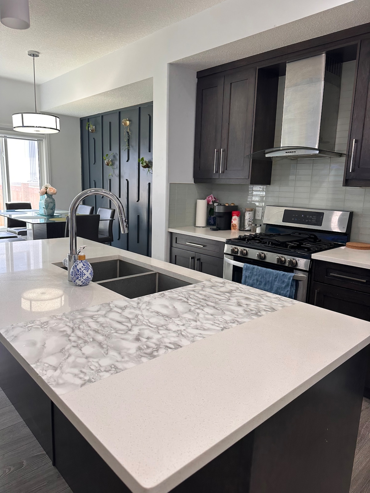 This special suite is close to everything, making it easy to plan your visit. Whether you are here for business, proximity to the airport for travel or to relax for a few days. All the luxury of high end hotel, with the feeling of home. This suite is immaculately clean and has 9ft ceilings with lots of natural light. There is a variety of specialized pillows with a quality mattress and linens to optimize sleep. Along with a specialty coffee machine, in-suite laundry and two Roku TV's.