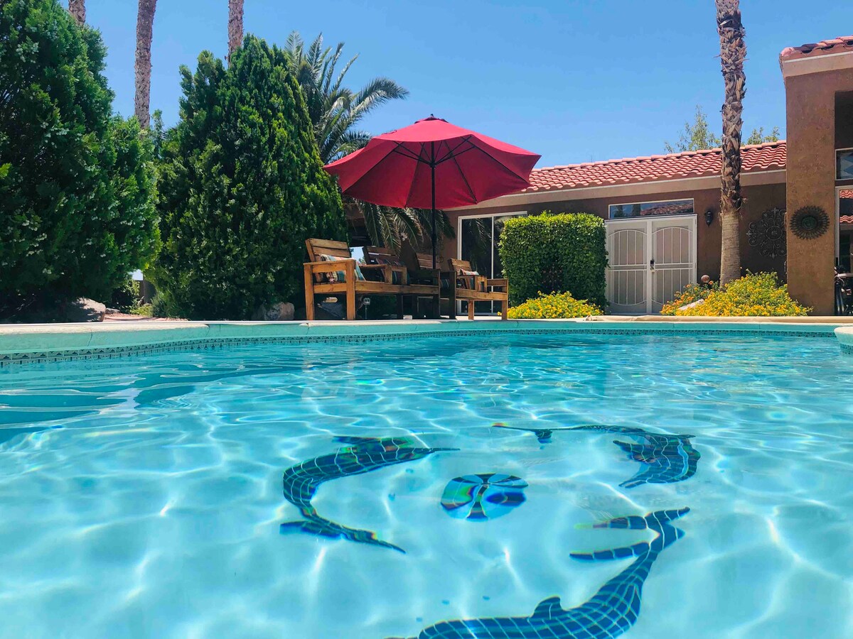 Located in the Mojave Desert and just steps from the Charleston Peak Winery, our beautiful Cabernet Cabana pool house is the perfect escape for you & your guests. The 1400 square ft pool house comfortably sleeps 5 with a private pool & hot tub and plenty of indoor/outdoor space. The pool house is located on 1 1/2 acres in an upscale neighborhood . We live in the main house. Our property is very quiet, secluded, and walled.