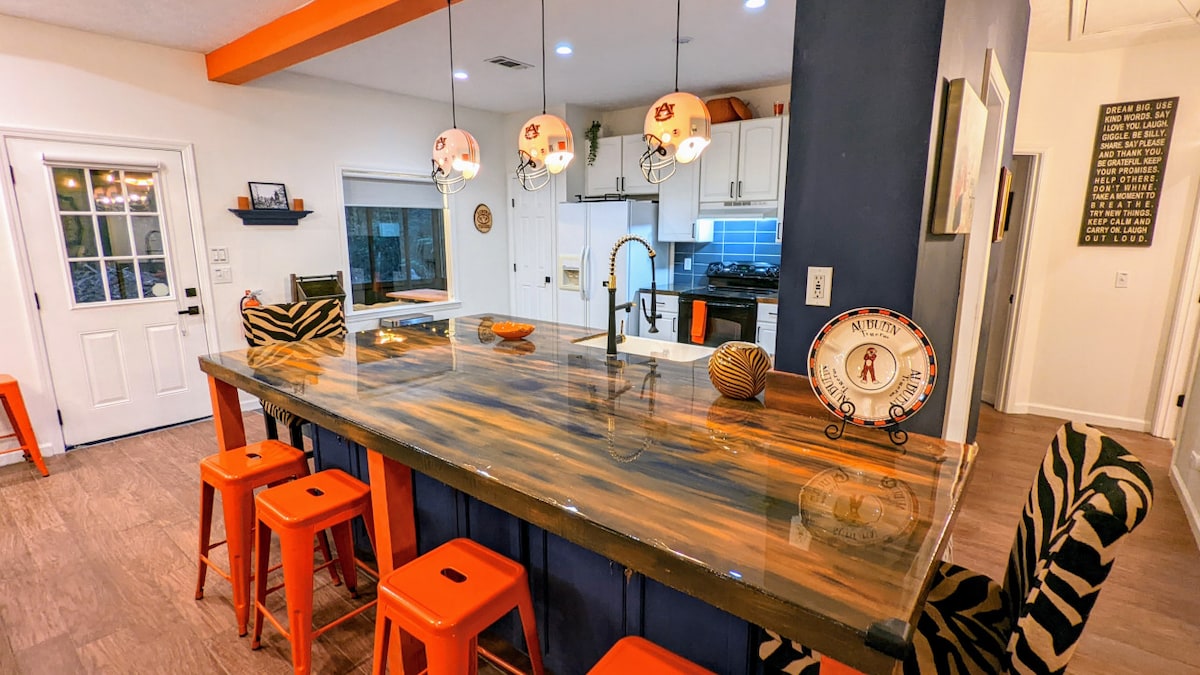 Unwind in our newly-renovated early-1900s home, just a short walk from the restaurants and businesses in Historic Downtown Opelika. Restaurants, bars, shopping, Ice Cream! Located across the street from a new walking park and green space. Easy access to Intersate 85. A 15 minute drive to Jordan Hare Stadium and Downtown Auburn. Less than 10 minutes from Tiger Town for great shopping and game day shuttles. This is a truly luxurious historic home in a great location.