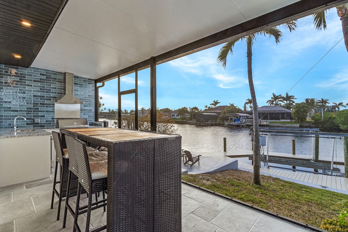 A sun soaked sanctuary with western exposure (all day sun), tucked along a Gulf-access canal in SW Cape Coral This villa combines modern coastal style with boho-luxe touches. From your private heated pool surrounded by palms to the curated interior, Coral Soleil Haus was created for slow mornings, vibrant sunset swims and barefoot living. Sip coffee by the water, fish from the pier, or cruise to the Gulf for a day at the beach-- you're perfectly placed for both adventure and total relaxation.