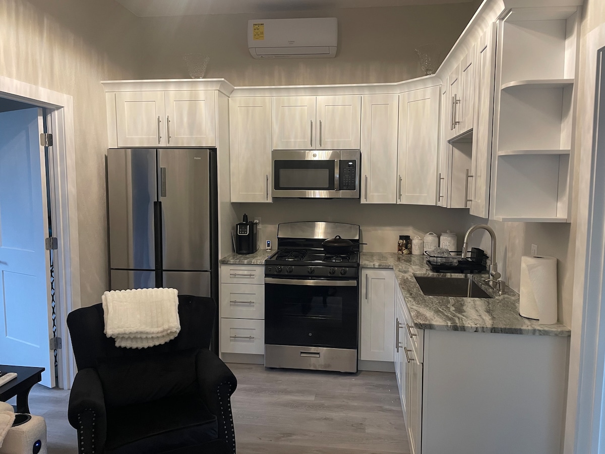 Welcome to your home away from home. This studio rental is detached from the main house, giving you absolute privacy and a quiet space to relax. The kitchenette is fully equipped with all the essentials to cook real meals. Step outside and you'll find a small private patio that's all yours, perfect for morning coffee or just getting some fresh air. You've also got your own parking spot in the driveway, so no need to stress about street parking.