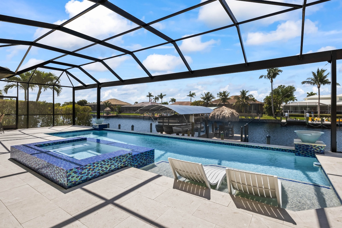 Welcome to your private piece of paradise in Cape Coral where luxury, serenity, and unforgettable memories await. This custom-built Mediterranean estate is more than a vacation rental, it’s an experience. Located in the most desirable area of SW Cape Coral, The Docks at Cape is a 4-bedroom, 4-bathroom home that sits on the coveted Spreader Canal, offering direct Gulf access in 22 minutes, breathtaking sunset views from Rooftop deck, and a level of craftsmanship rarely seen in vacation homes.