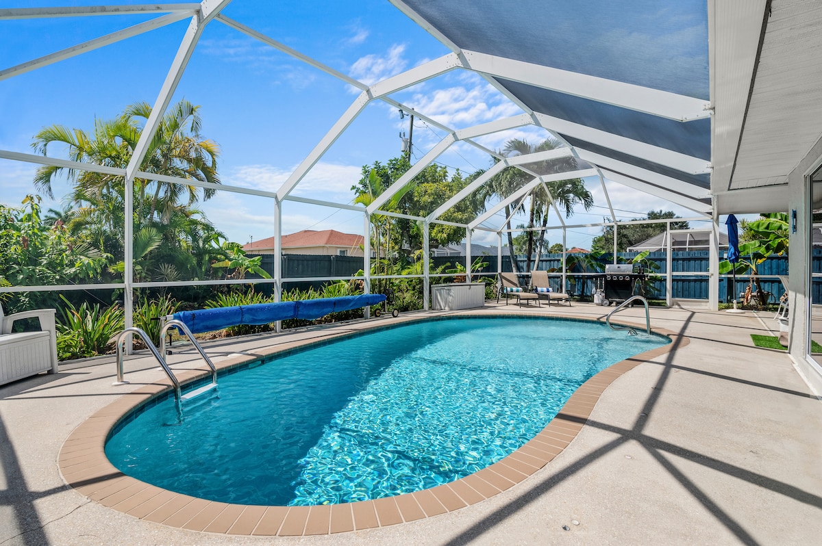 Welcome to our Cozy Cape Coral Getaway! Step into a spacious, open layout that welcomes all families & friends with open arms! Nestled in a perfect central location, our place was designed with your convenience in mind! Whether you're whipping up delicious meals in the full kitchen, enjoying quality time in the game-filled living space, or hanging out in the jacuzzi/ private fenced backyard. We are committed to transforming every moment here into unforgettable memories! *PET FRIENDLY*