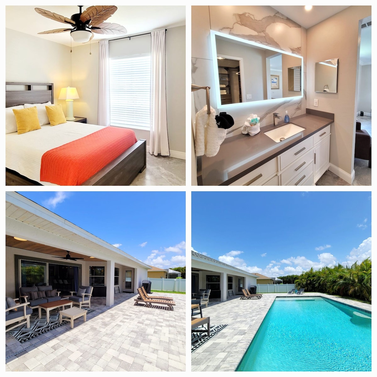 Your family will be close to everything when you stay at this centrally-located place. AMAZING wide water views, southern exposure pool. This 4 BR 3 bathroom completely rennovated home offers a private upscale retreat. Located in the highly desireable Pelican neighborhood near The Westin Resort,Tarpon Point with many shops and dining spots! The backyard oasis allows you to enjoy fishing from your pricate dock with poles providedor float the day away in the amazing pool soaking up the sunshine!