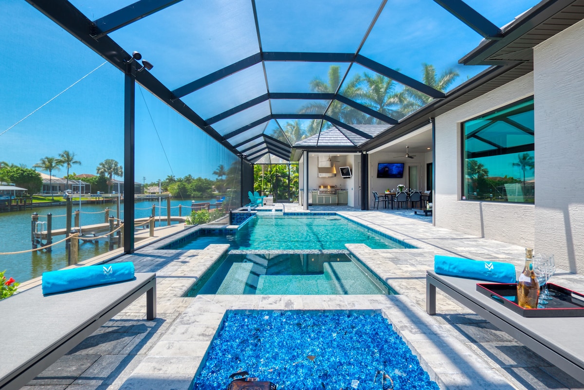 From the moment you arrive, enjoy countless activities/amenities just minutes from the Villa—like pristine beaches, championship golf courses, boating on the Gulf of Mexico, jet-skiing, parasailing, kayaking, fishing trips, or simply relax by the pool. Perfect, waterfront 3 bed 2.5 bath gulf-access pool home, nestled in SE Cape Coral’s exclusive Yacht Club area. Spend your vacation relaxing in the private pool or down by the water’s edge. Fancy renting a boat? You’re just one beer to the river!