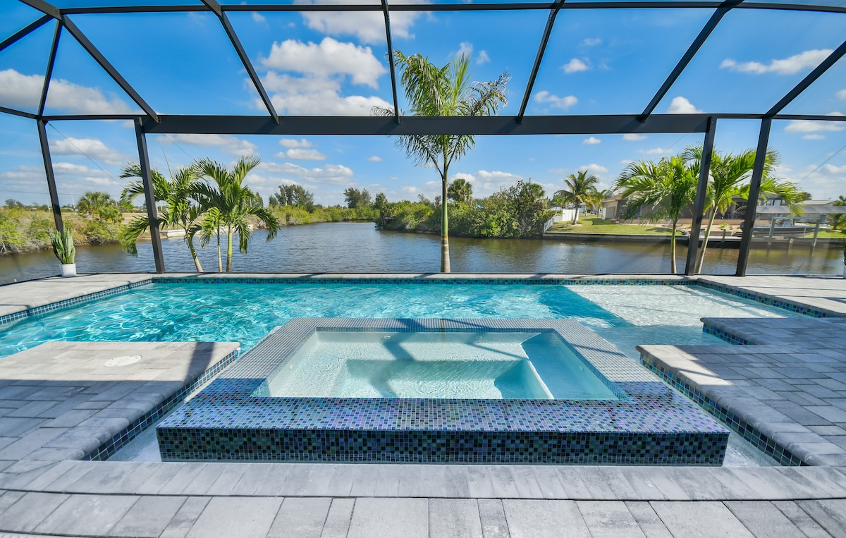 Unwind Cape Coral welcomes you to sunny southwest Florida, close to magnificent beaches, fishing, shelling, Minnesota Twins Spring Training & much more. Come enjoy this new construction home with heated pool, Kayaks, heated and cooled game room (PlayStation 5), gulf access - salt water canal, 4k oled tv's & many more refreshing amenities. You will love this clean & bright home with lovely décor. Located in the highly sought after Pelican neighborhood of Southwest Cape Coral!