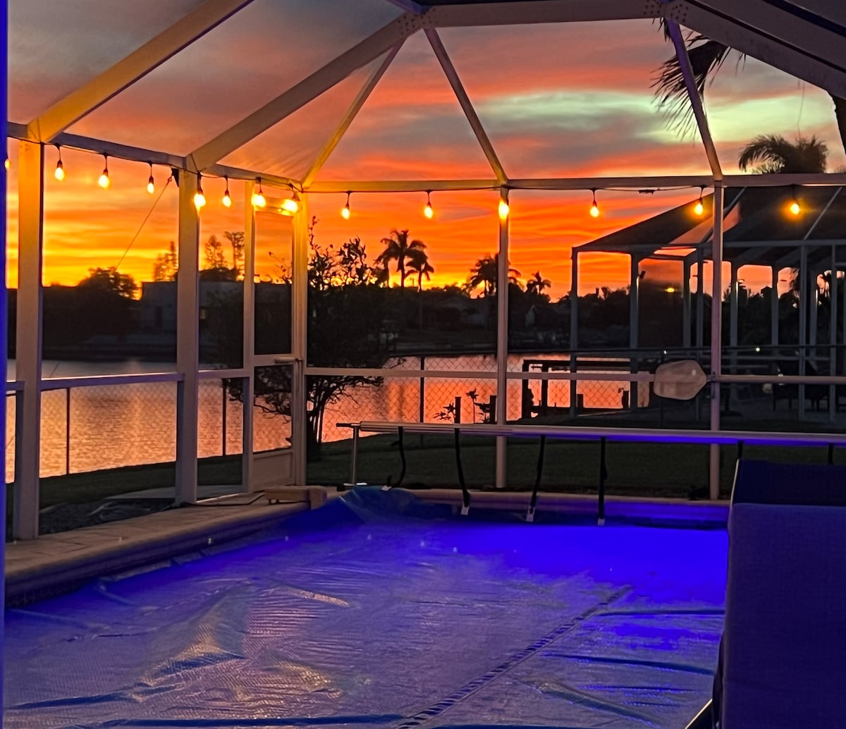 Unwind Cape Coral welcomes you to sunny southwest Florida, close to magnificent beaches, fishing, shelling, Minnesota Twins Spring Training & much more. Come enjoy this new construction home with heated pool, Kayaks, heated and cooled game room (PlayStation 5), gulf access - salt water canal, 4k oled tv's & many more refreshing amenities. You will love this clean & bright home with lovely décor. Located in the highly sought after Pelican neighborhood of Southwest Cape Coral!