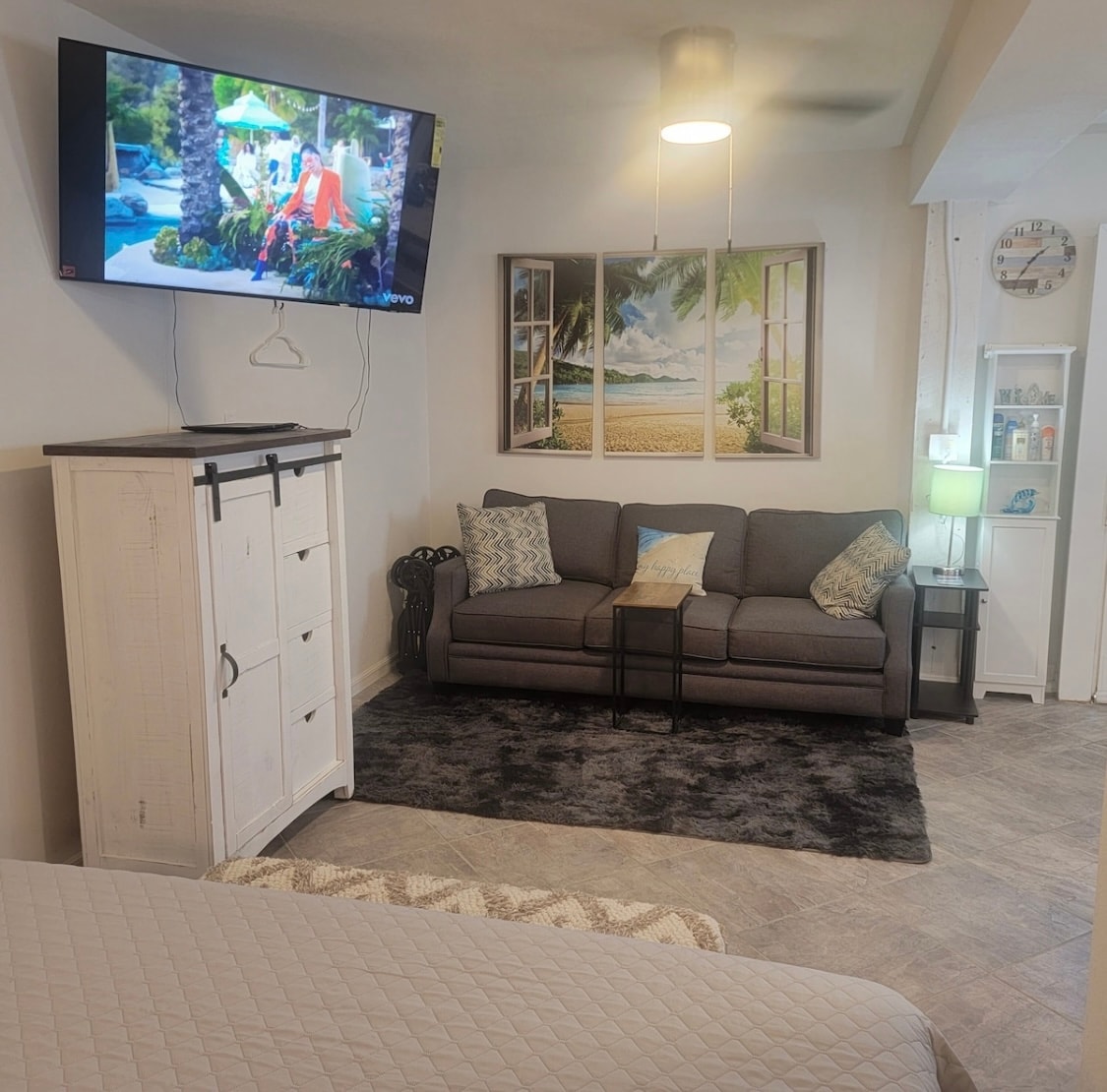 Discover the perfect blend of modern and tropical charm at our 1BR/1BA loft apartment in Downtown Fort Myers Beach. Just a 2-minute walk to the white sands, this upscale retreat is walking distance to the beach, Times Square, restaurants, bars, and shops. Enjoy water sports, kayaking, parks, and more. Ideal for couples, snowbirds, or anyone seeking a tropical escape, The Loft FMB combines modern comforts with island relaxation truly designed to feel like your home away from home.