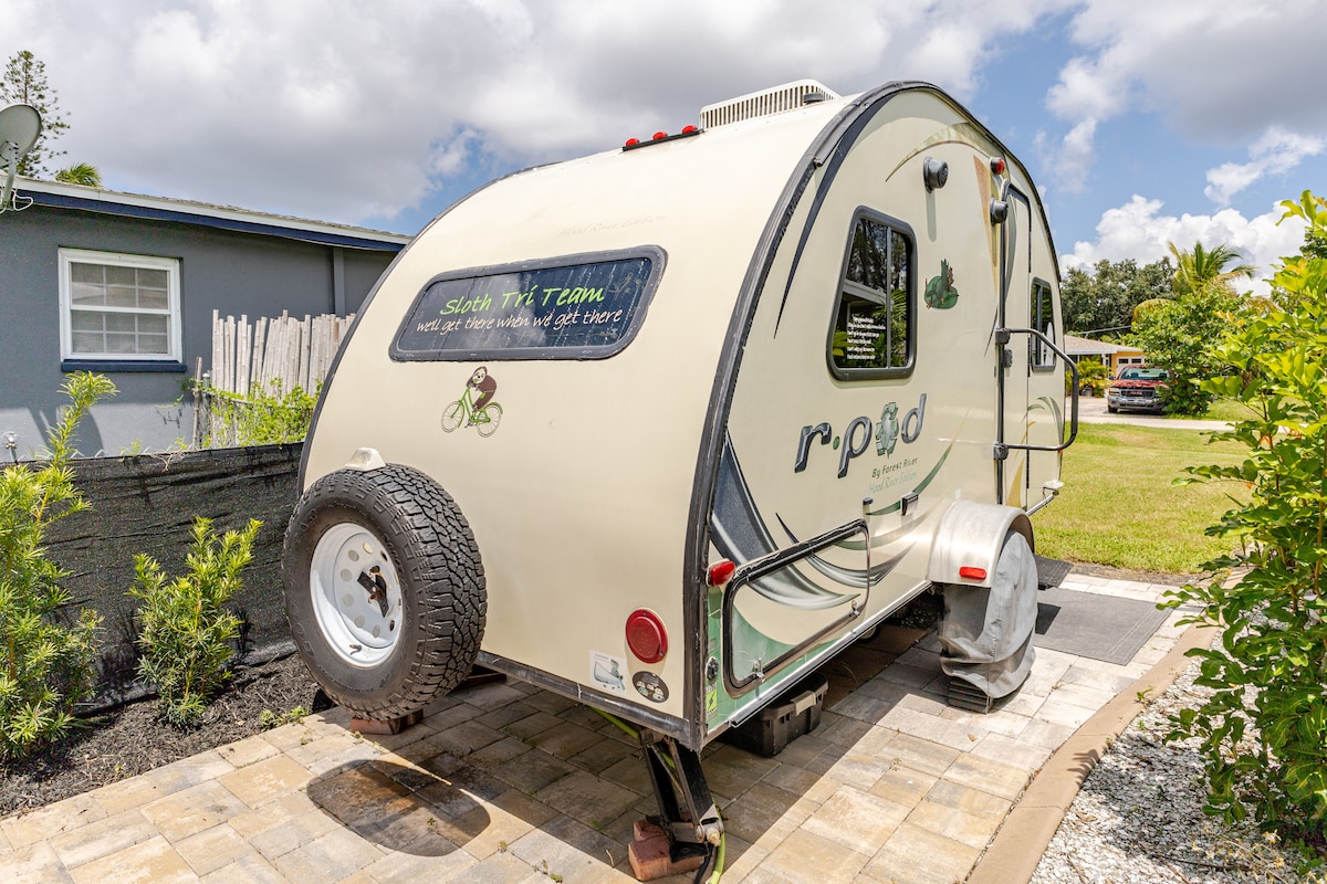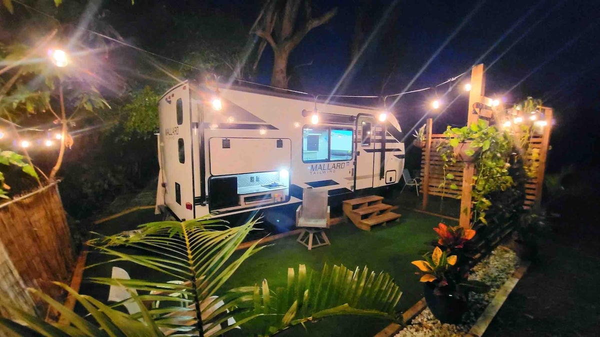 Come Glamping in this luxurious 2022 RV. Nestled in our large historic lot with your own private space with WIFI and smart TV w/ all ur fav streaming aps. Outdoor area w/ bbq, fridge and plenty of room to relax. Experience the up and coming Gardeners Park neighborhood 5 BLOCKS FROM downtown Fort Myers!!! Walk to your favorite coffee shop in the AM get a slice from DHOP for lunch. One block from Bullig Bites, Remedies Parlor, Wisteria Tea room, Swamp Cat Brewery .