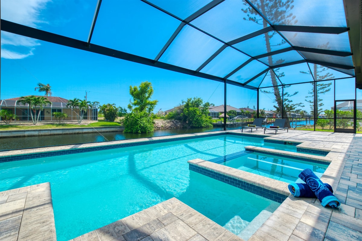 Experience Cape Coral like never before all from this gorgeous 3bedroom, 3bath villa. This elegant villa boasts a vibrant interior decorated with Italian furniture and fully equipped kitchen. Begin your day with a few laps in the private pool before heading to the Yacht Club Public Beach, Sun Splash Family Waterpark or Pine Island to soak up some sun! After adventurous days, continue making memories back home with a family barbecue and a soak in the hot tub or have a movie night with loved ones!