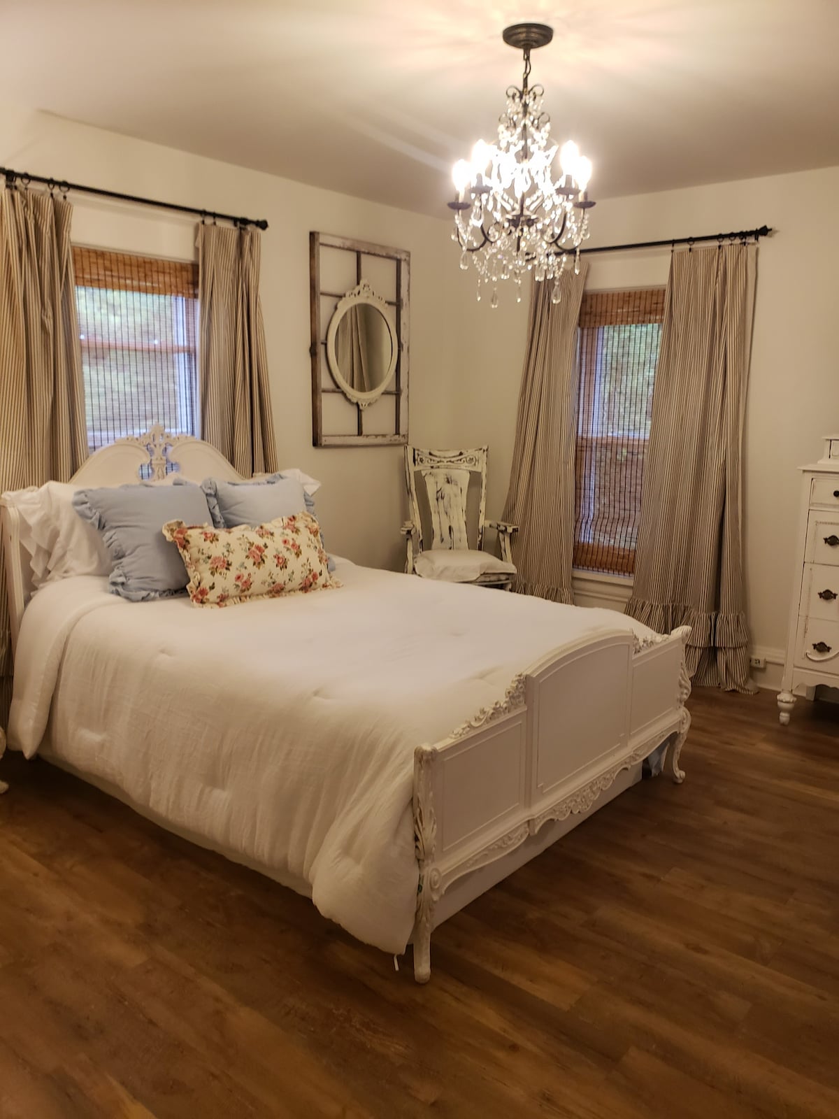 Tucked away in a quiet, wooded neighborhood just minutes to downtown Dixon, this serene and stylish getaway is the perfect spot to unwind. Designed with natural elements like stone, wood, marble, and glass, the space feels both elevated and grounding—ideal for couples or a small family looking for a refreshing escape.