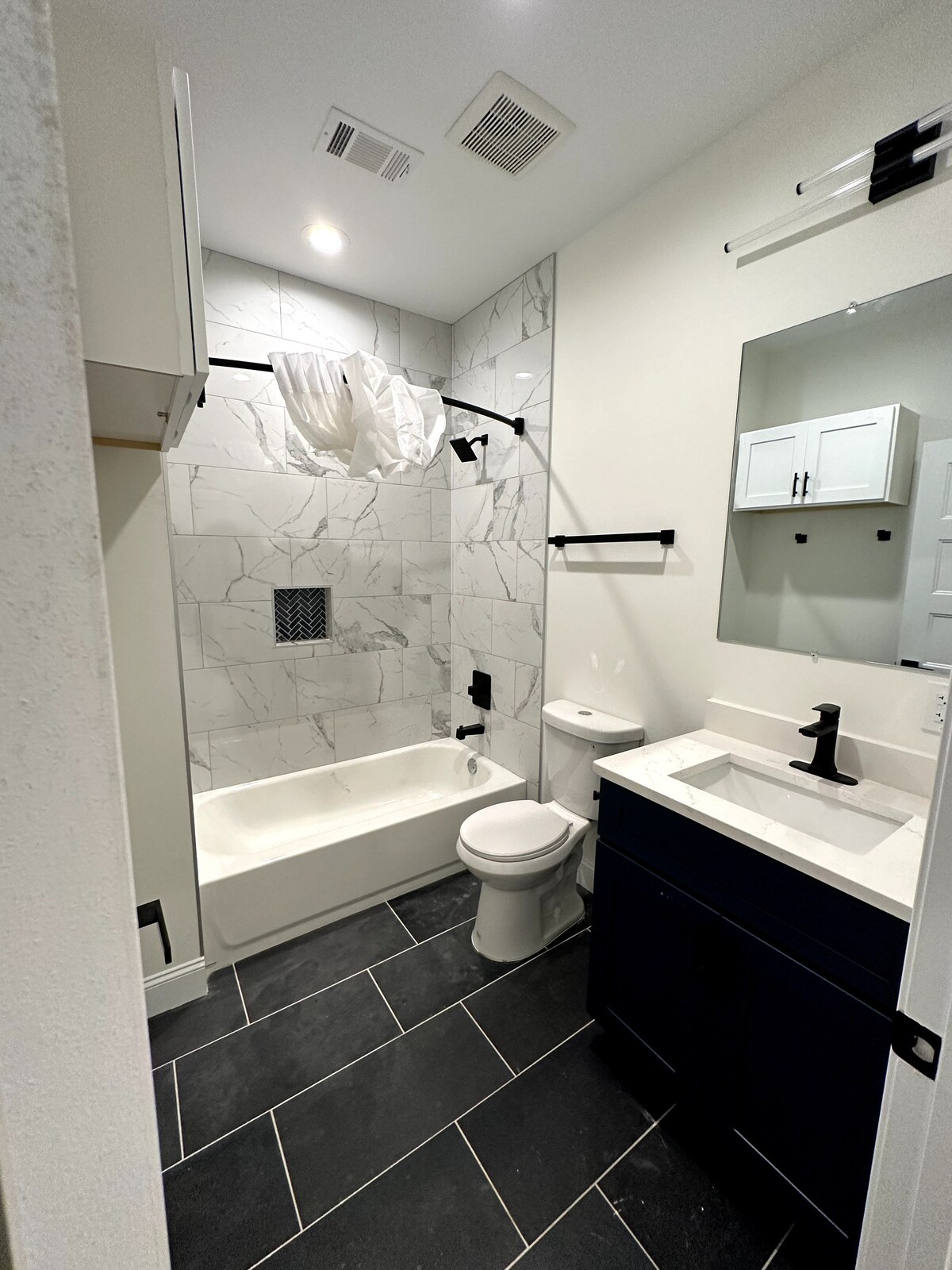 FRESH, CLEAN, & MODERN AIRBNB! This space has everything you need: Gorgeous kitchen, hardwood floors, amazing deck w/ large backyard, and beautifully designed bedrooms. Down the street from a cute park & minutes away from downtown, restaurants, & stores!