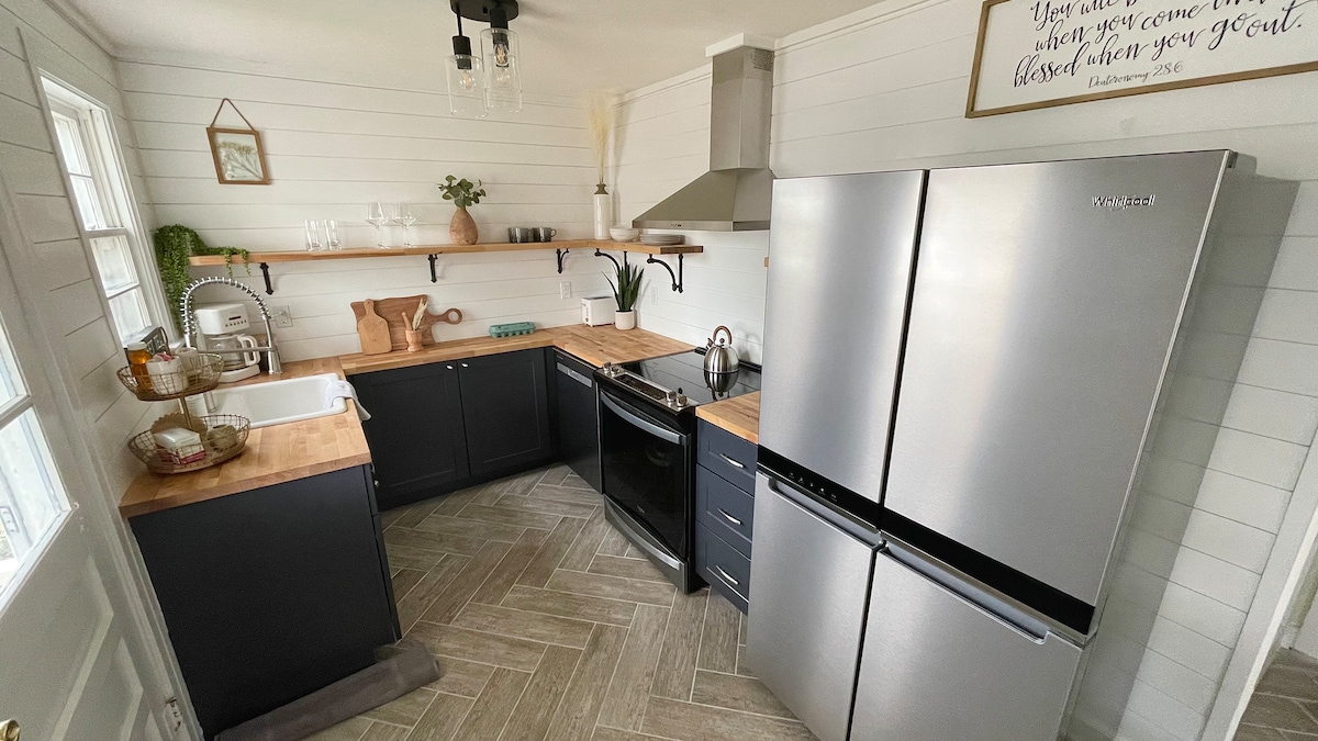 Take it easy at this unique and tranquil getaway. 7 minutes from the Tupelo Flea/Furniture Market! PET & FAMILY FRIENDLY!!! The cottage features a living area, a fully equipped kitchen, and a dining area. This older home does not have a lot of outlets, but I have cellphones charging stations in the living room and each bedrooms. Bedrooms are complete with a plush bedding and soft linens. outside is a private wrap around patio and on the back deck a private dining area with party lights above.