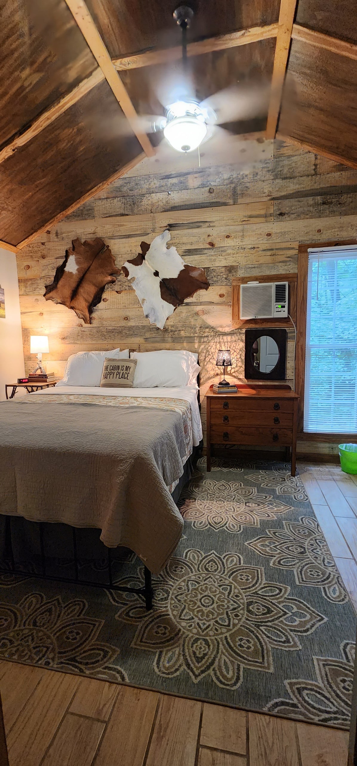 Check out this Boho Paradise! We designed this place to make you feel like royalty, or at least like you’re in a Pinterest board lol. With Alexa speakers throughout, you can easily hear your fave songs while you chill comfortably inside, or if you prefer… head outside and heat things up (ya know, like burgers on the grill or s’mores over the fire). Or just hang out (literally) in the shade on the comfy daybed and watch the hummingbirds eat. Sheldon loved it so much he never left! (See pics)