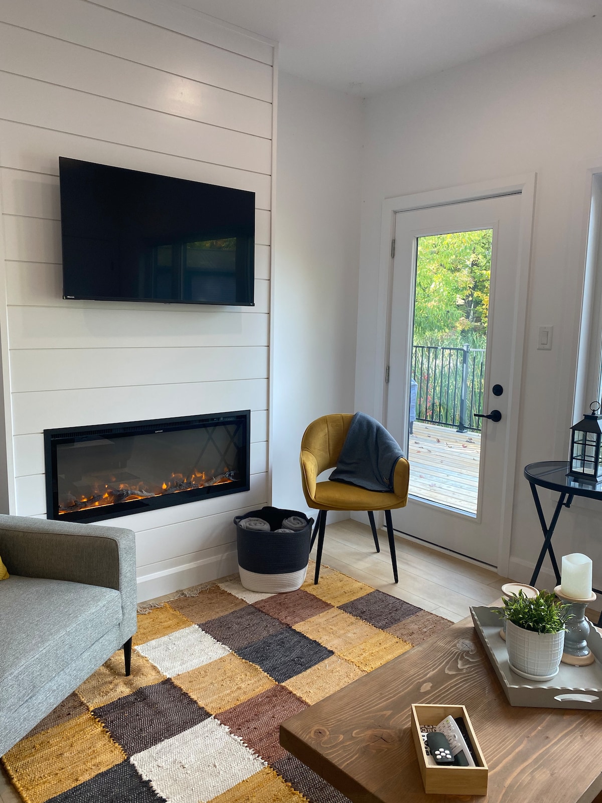 Take it easy and reconnect with nature at this unique and tranquil A-Frame getaway. Our newly renovated A-Frame nestled amidst 2 peaceful acres of woods, offers stunning views perfect for enjoying quality time with family or friends. Roast marshmallows under a blanket of stars by the fire pit, challenge your group to a game of cornhole on the lawn or have a delicious BBQ on the deck while listening to the calming sounds of nature . * Provincial Park Pass FREE to use !!!