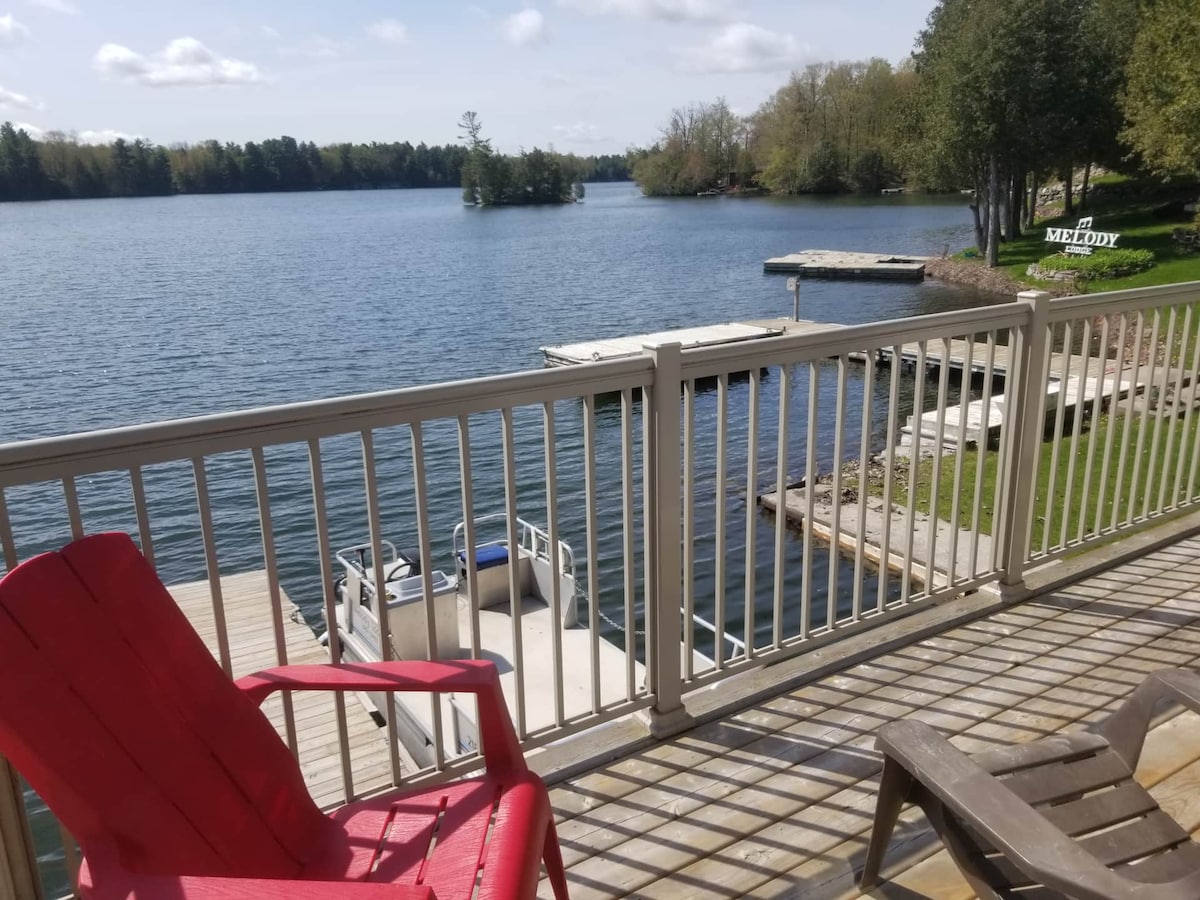 Relax with the whole family at this peaceful place to stay. This beautiful 3 bedroom, 1 bath, (1 queen bed), (1 double bed), (1 twin bed) is located in the heart of the beautiful 1000 Islands. Located 5 minutes from the US border. This cottage/house has air conditioning/ furnace, wood stove, laundry, dishwasher, tv, wifi, propane bbq, coffee maker, toaster, microwave, stove-oven, refrigerator/freezer. A dock for your small boat or seadoo is also available. Canoe and life jackets provided.
