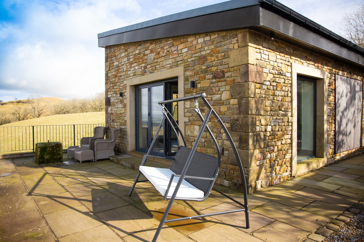 The Chicken Shed at Knowle Top was newly built in 2019 on the ruins of an old barn and decorated to the highest standards of industrial chic. Situated in a most unique location, high on the Ribble Valley side of Lancashire’s iconic Pendle Hill, it sits surrounded by sheep pastures where hare and fox come to say good-night. Despite this rural idyll, we’re only a five minute car drive from Clitheroe, one of the North-West’s nicest market towns. The views will take your breath away!