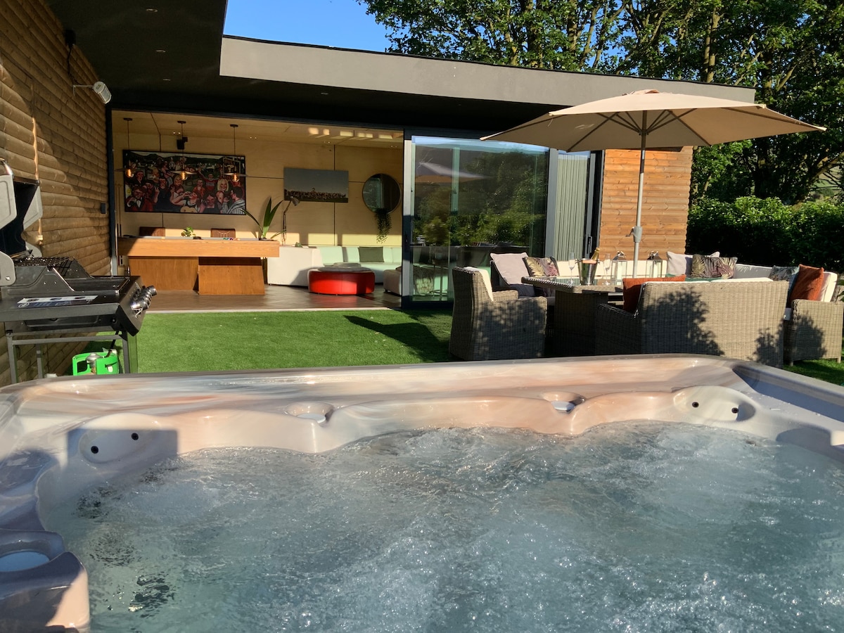 A luxurious unique wooden lodge nestled in the Saddleworth hills , on the outskirts of the picturesque village of Diggle with the popular villages of Delph , Dobcross and Uppermill all within a 5 minute drive away Alternatively with the canal a stone’s throw away a stroll will take you to many cafes bars , shops and restaurants