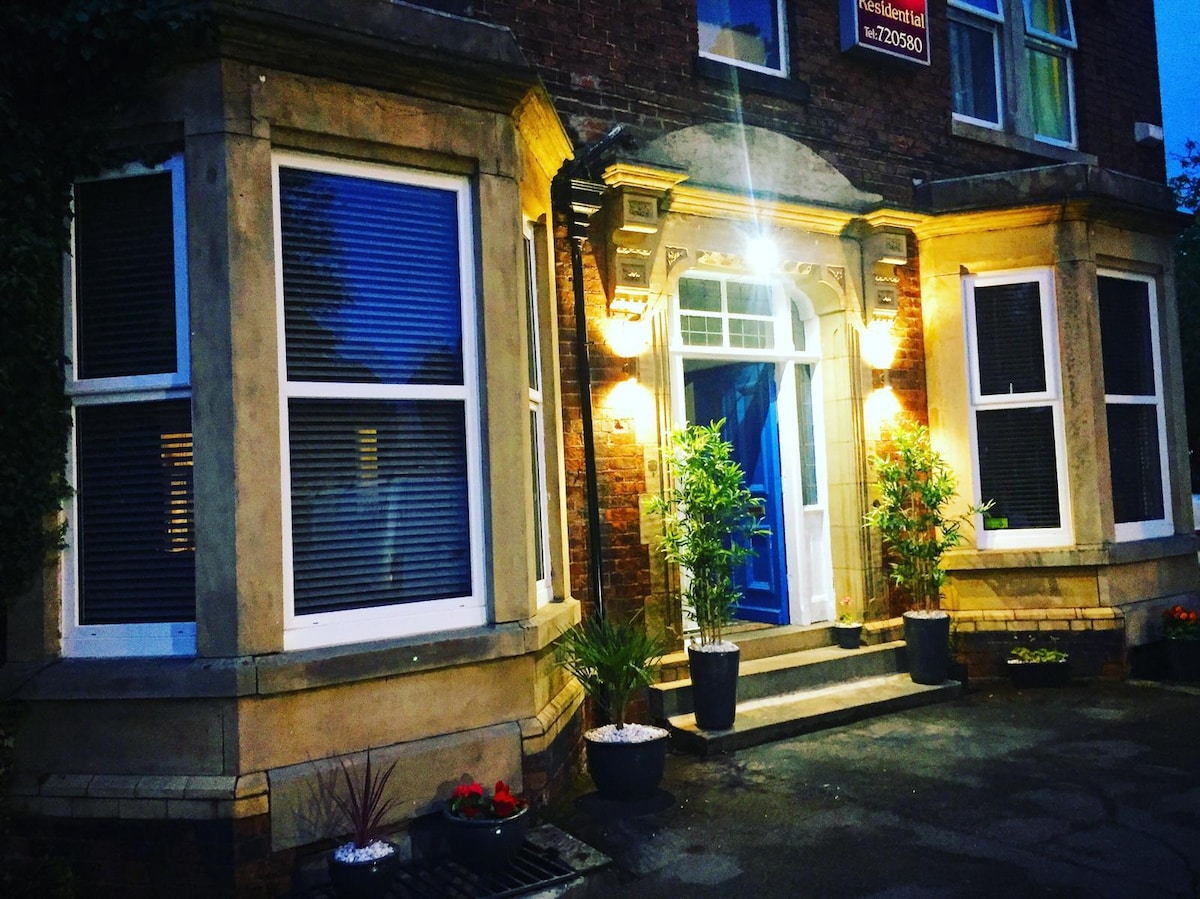 We're Karen and Phil, together with our 30 year old son we have lived in our beautiful 5 bedroom Victorian home for 27 years. It was built in 1895 and retains most of its original stunning features! We are conveniently situated 15 min drive from Manchester city centre. The Metrolink is 5 minutes walk away which will take you north, south, east & west of Manchester...including the Manchester Arena and the airport. The M60 - J17 is half a mile away.