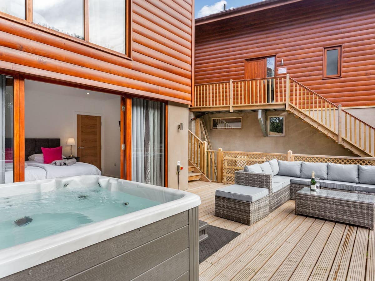 Cosy central heated Wooden log cabin/lodge surrounded by beautiful countryside views. Ideal for those wanting to be a mile from our local village but in a quiet area. Walks for all abilities from our doorstep. Two medium sized dogs are welcome. Local pubs are dog friendly and we have lots of places to eat locally. Amazing views, a wood burning stove, a very comfy four poster king sized bed, easy to use sofa bed and a fantastic shower have all been in 5* feedback left by many satisfied guests.