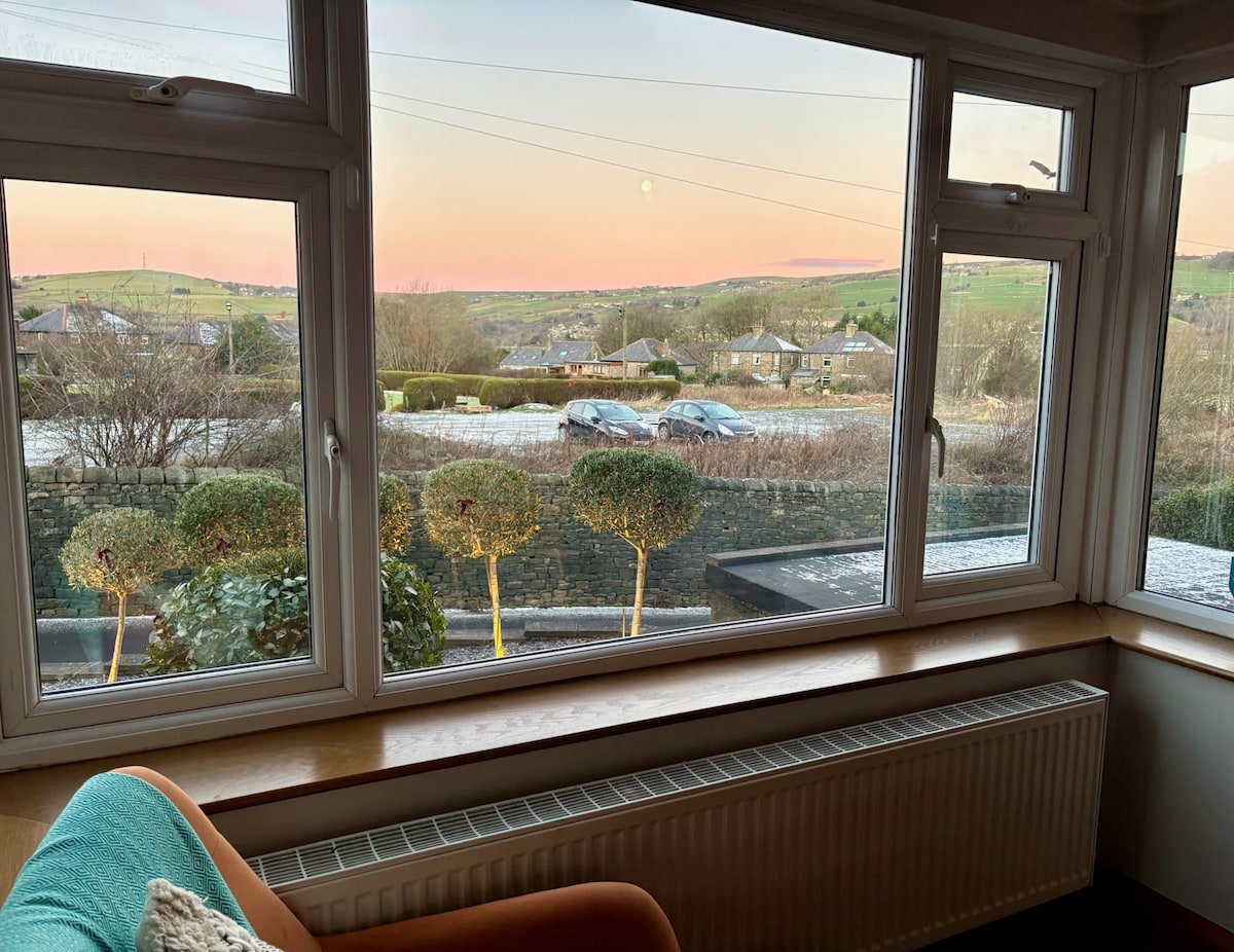 With stunning views of Saddleworth's roaming hills, this is the perfect home away from home. Nestled in the quiet, picturesque town of Saddleworth with amazing views and close proximity to Manchester, secluded and private with its own Lazy Spa. This grand 4 bed home comes with plenty of amenities, perfect for families and guests looking to get away, to unwind and relax in a tranquil environment. Luxury, style and comfort. Brand New Hot Tub!!!
