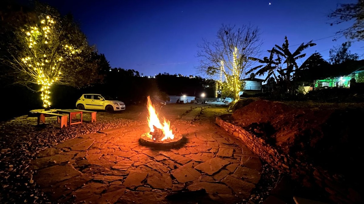 Experience a private luxury villa offering hotel-style amenities and breathtaking Himalayan views surrounded by pine forests. Enjoy expansive outdoor spaces with a bonfire pit, barbecue, and live tandoor setup. A private chef can serve local and global cuisines at nominal à la carte rates. Have fun with a pool table, table tennis, board games, karaoke, and stargazing through a telescope. With DG backup and serene surroundings, it’s the perfect place to relax, unwind, and reconnect with nature.