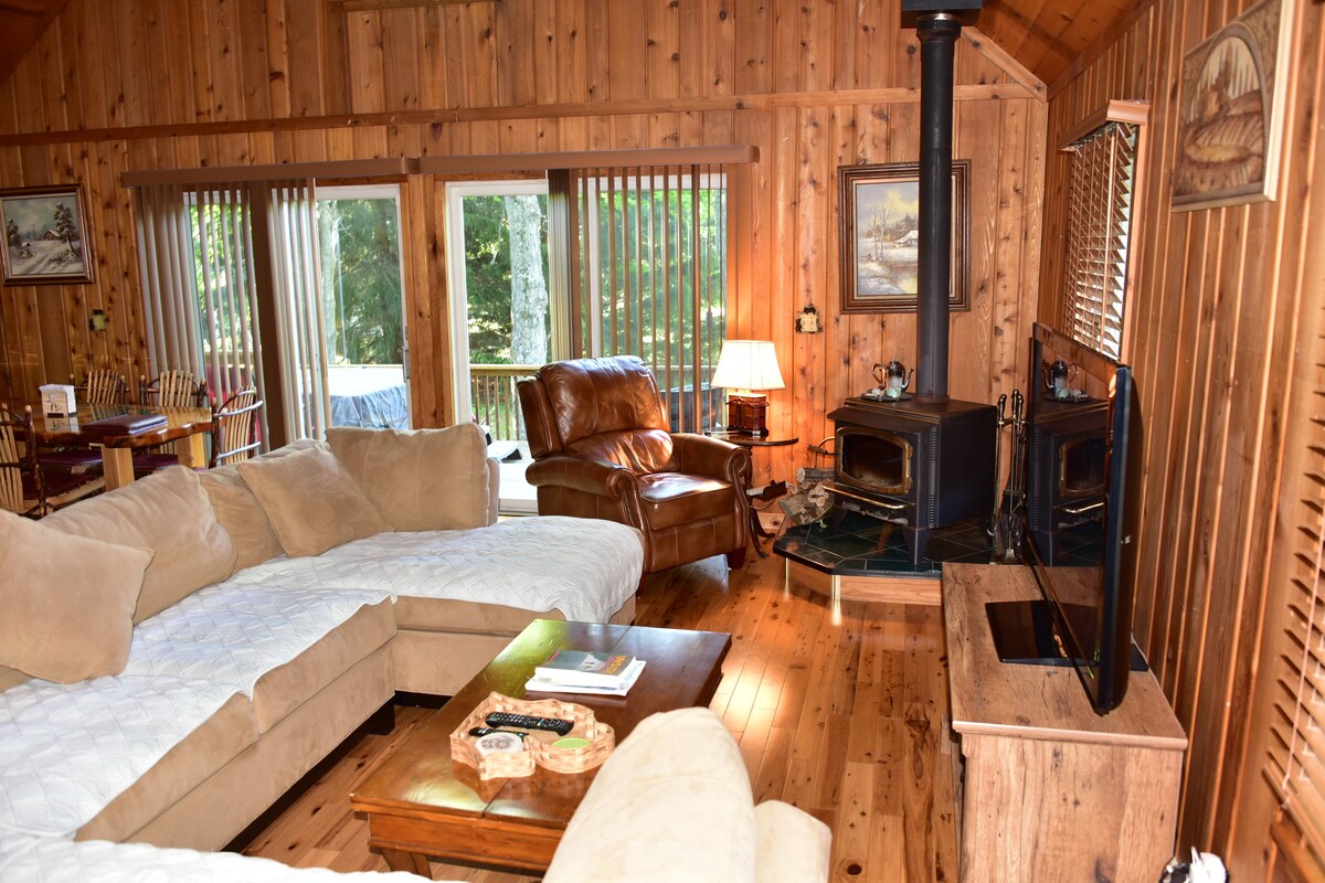 Centrally located chalet offers a truly immersive experience in the heart of the LP and minutes away from beaches and wineries. The warm wood interior and abundant natural light provides a serene atmosphere. Spend your days lounging on the deck and enjoying the tranquility of the peninsula. As the sun sets, gather around the fire pit for a cozy evening under the stars. The Viking jetted Tub allows you to relax and unwind after a day of exploring. Bring your furry friend along for the adventure.