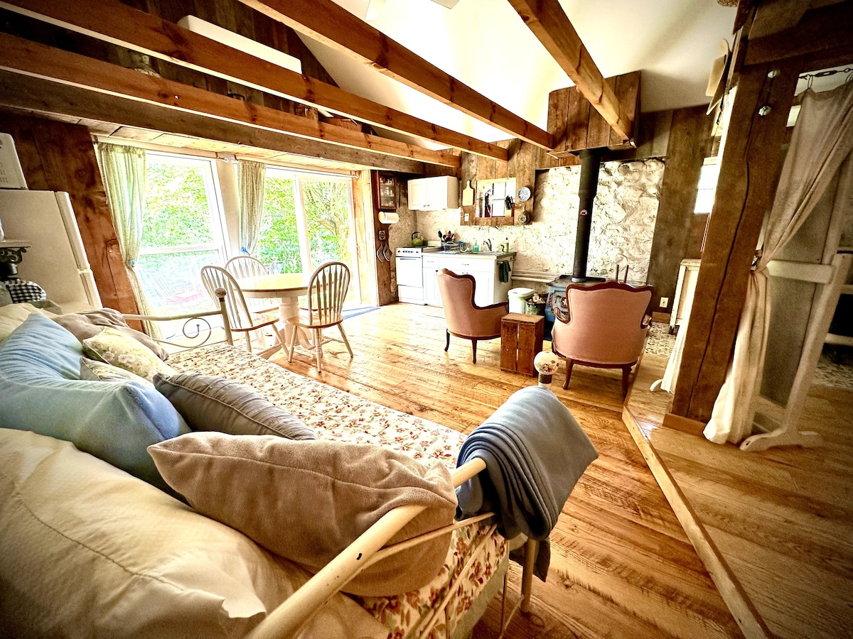Voted one of the top 85 Airbnbs by Conde Nast Traveler. The Granary is a lovingly restored two bed + one bath cabin located on 12 wooded acres with a secluded Lake Michigan beach nearby. A short drive to town will give you access to restaurants, groceries, breweries and wineries. Dogs are welcome! Please message us to discuss bringing more than 1. Absolutely no cats or other pets are allowed. We do not have a TV, but we do have fiber optic high speed internet.
