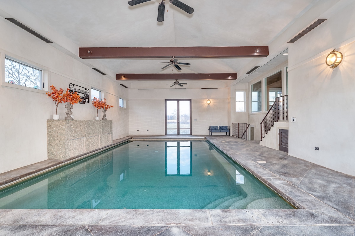 农场风格的修复屋,带5500平方英尺室内泳池和热水浴缸