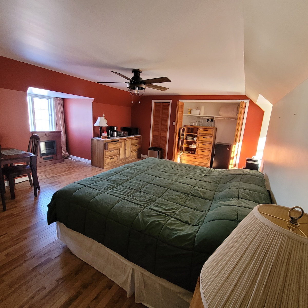 Charmant studio situé dans le magnifique village relais de Montebello(région Outaouais) . Par son entrée privée, vous entrerez dans un lieu chaleureux. Confort et commodités, tout pour vous plaire! Un micro-ondes, un four de comptoir et une Nespresso sont quelques-uns des items mis à votre disposition pour agrémenter votre séjour. Une salle de bain privée munie d'une grande douche ajoute à votre confort. Un lit escamotable de qualité supérieure rechargera vos batteries. Animaux non-acceptés.