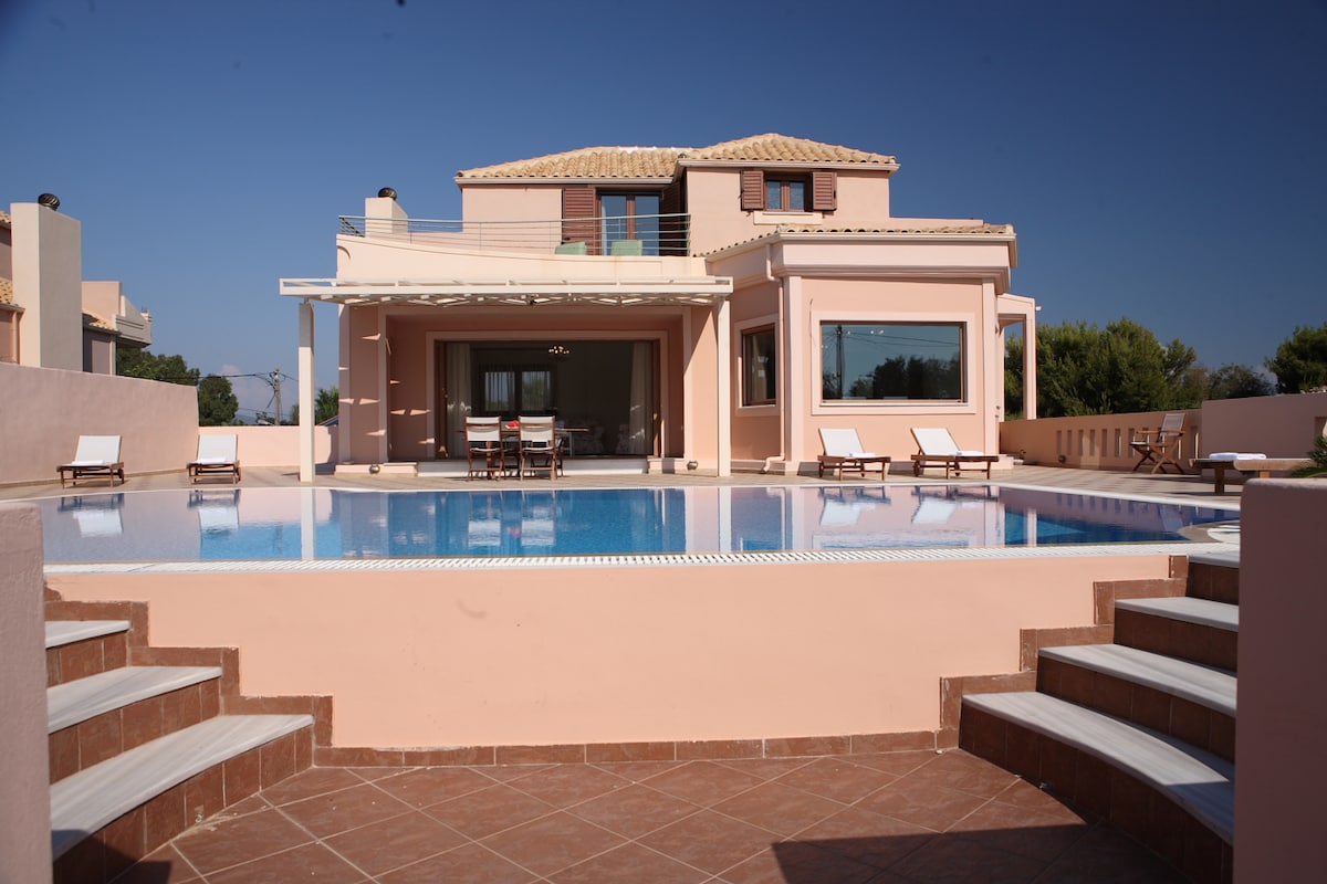 This holiday home sits in an exclusive, gated development in Ligia village and enjoys an ideal location for panoramic views Chill out or soak up the glorious sunshine in a stylish and specious villa with 3 bedrooms, a private pool, and beautiful sea and mountain views, just a few hundred meters from Ligia beach, water sports fun park, and local tavernas Dama Olga is a true example of understated elegance, grace, and beauty affording tranquility and peacefulness