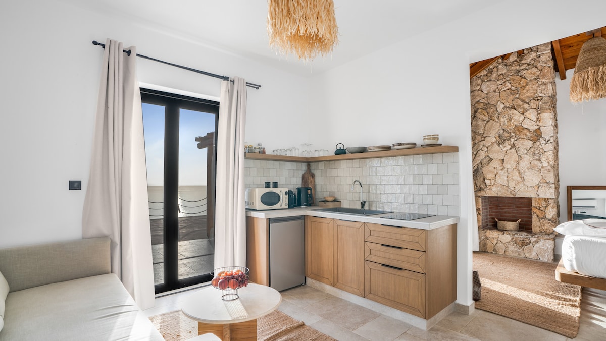 A two-bedroom apartment that is situated right on the waterfront. Access to a semi-private beach right outside your balcony door. All the rooms have air-conditioning and smart amenities that will keep you comfortable and relaxed. A large patio with a great view for magical nights spent in the Ionian breeze. A full kitchen and washing machine in the bathroom for your convenience. Poseidon is truly lord of the sea.