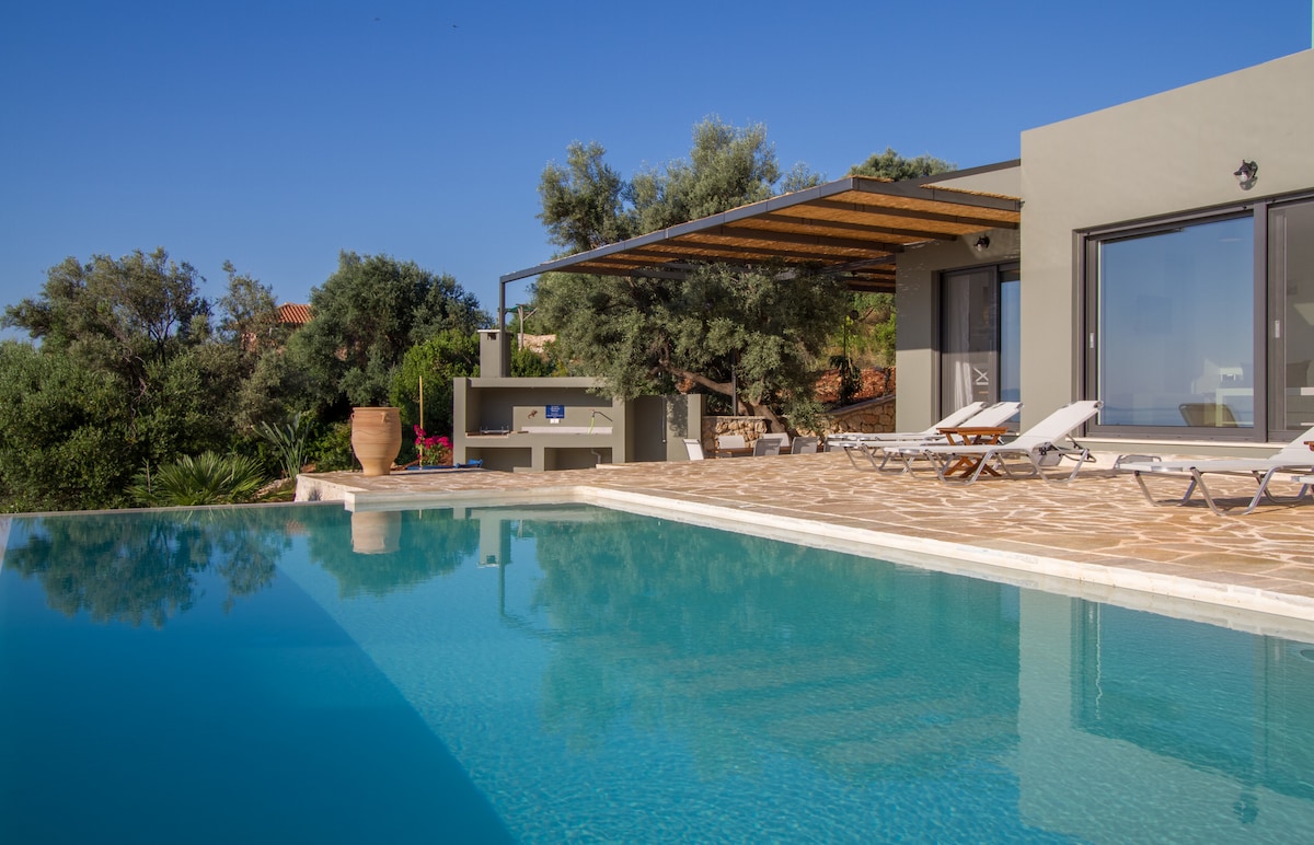 客人喜欢莱夫卡斯度假屋的厨房、无线网络和游泳池